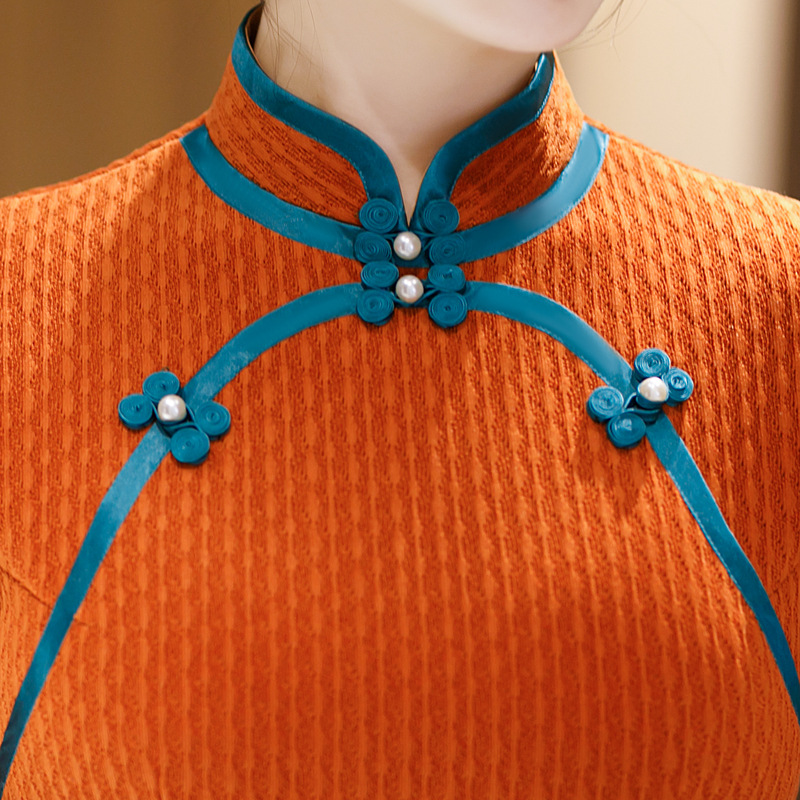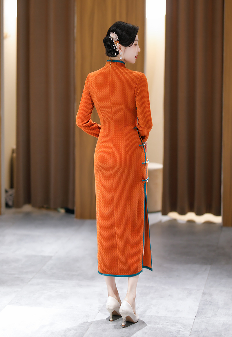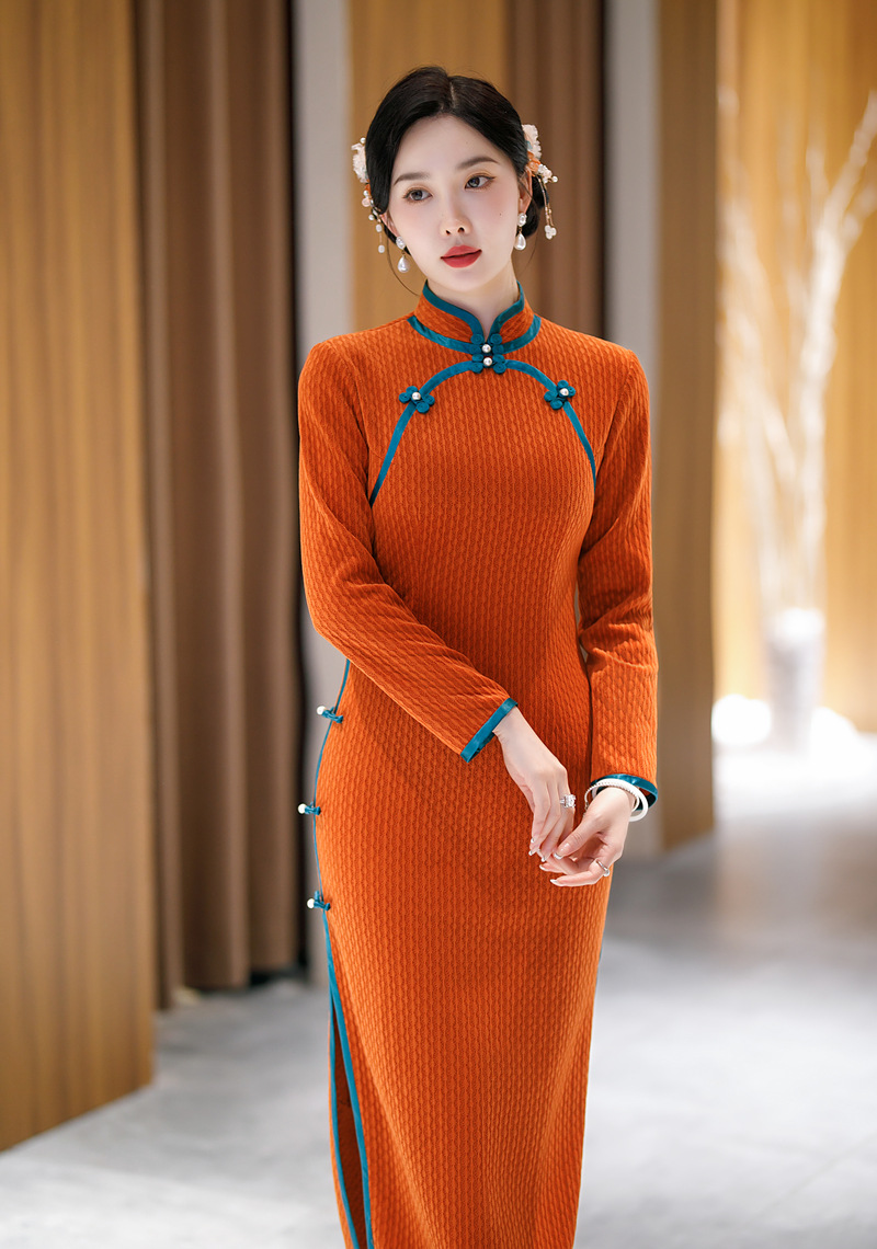 老上海复古国风丝绒旗袍,大摆裙秋冬新款改良新中式中老年旗袍GX-22218