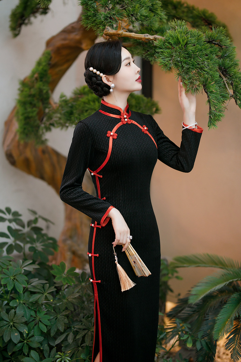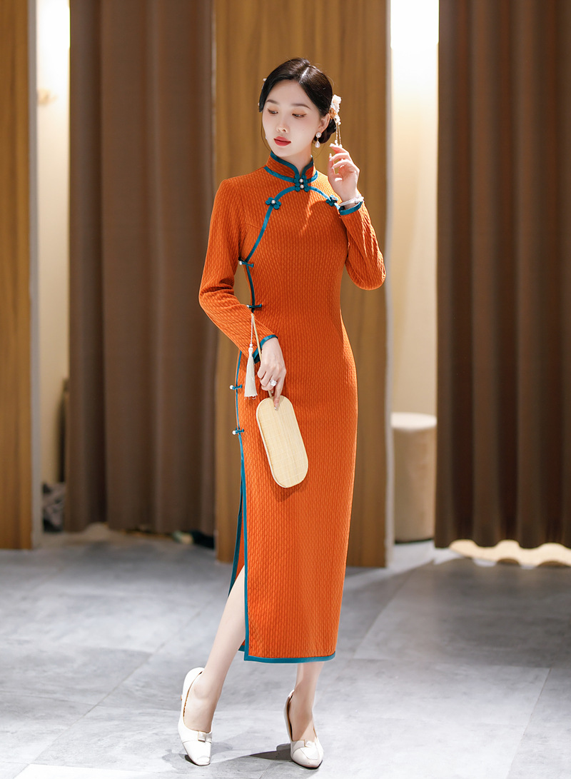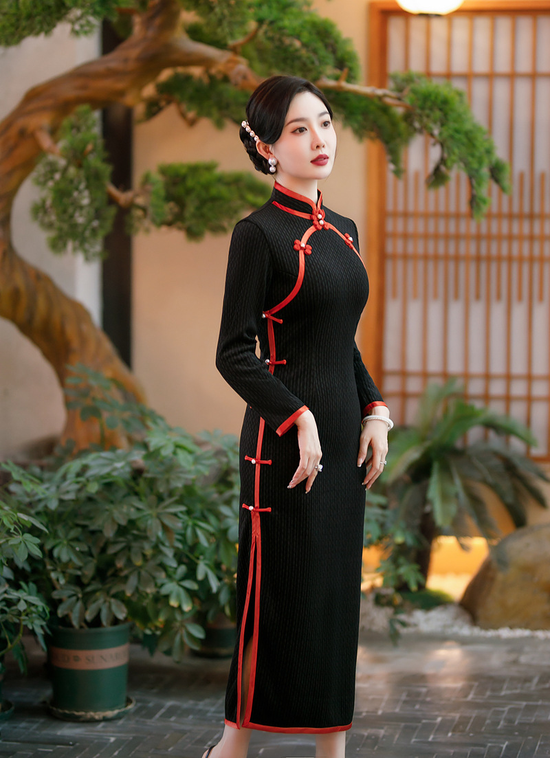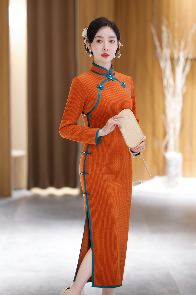 秋冬改良复古民国高端气质长款宴会礼服连衣裙SYG-673