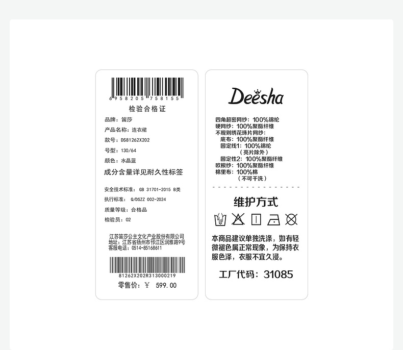 笛莎/Deesha 2026年夏季新款女童中大童精致公主连衣裙裙子