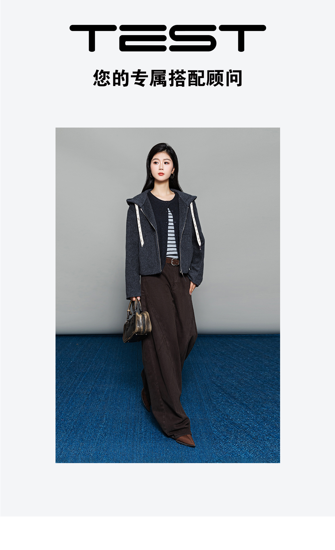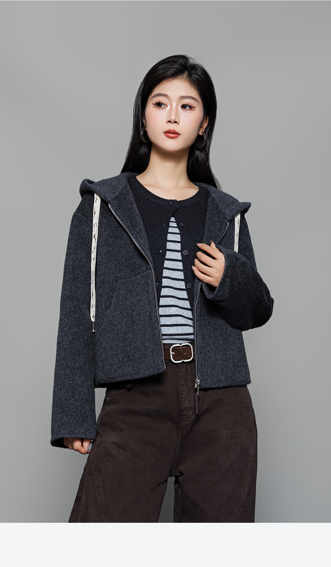 冬上新灰色连帽双面呢百搭又显活力双面呢短款外套2254060