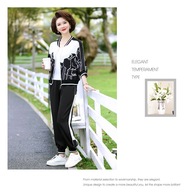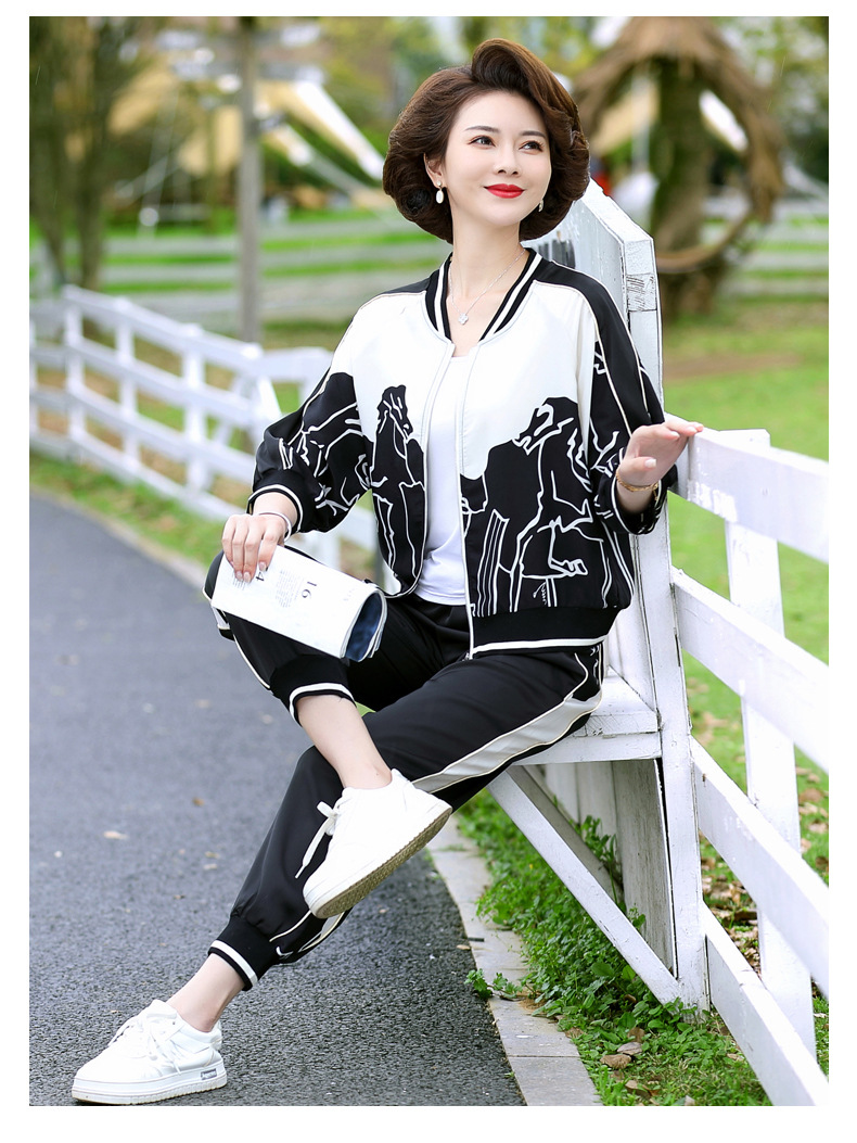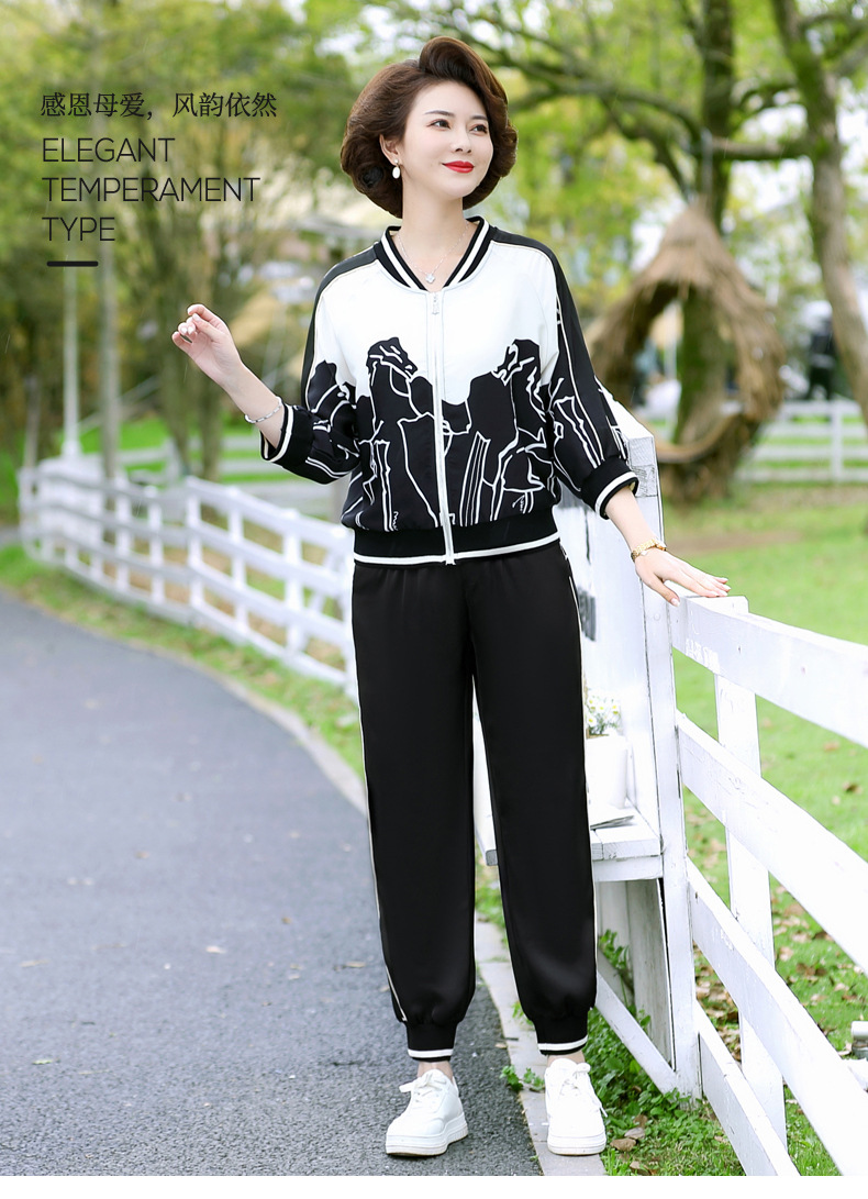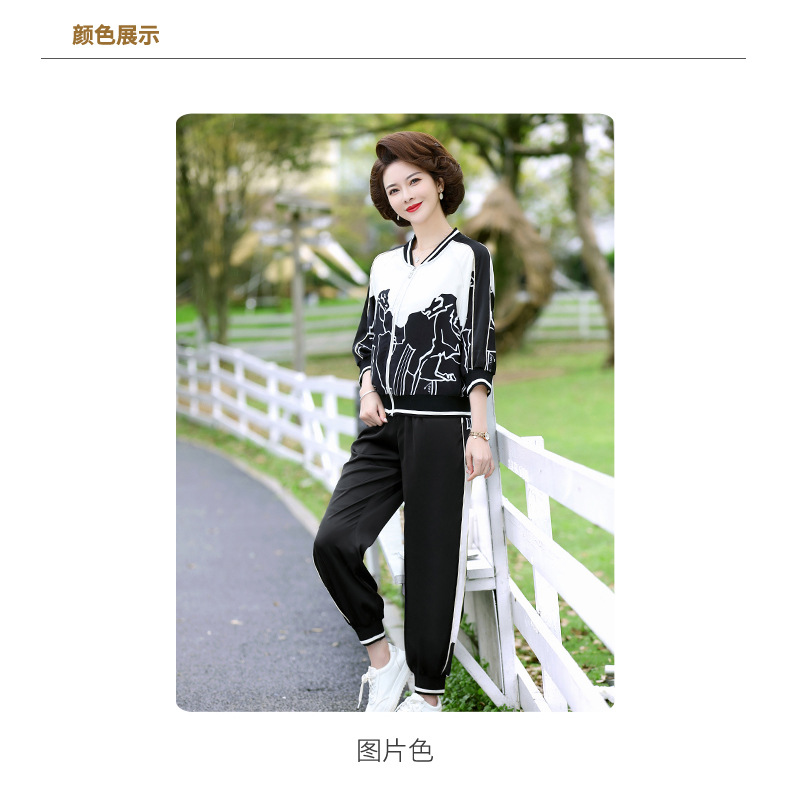 【气质妈妈装两件套】秋冬洋气上衣中年女装 中老年运动休闲套装