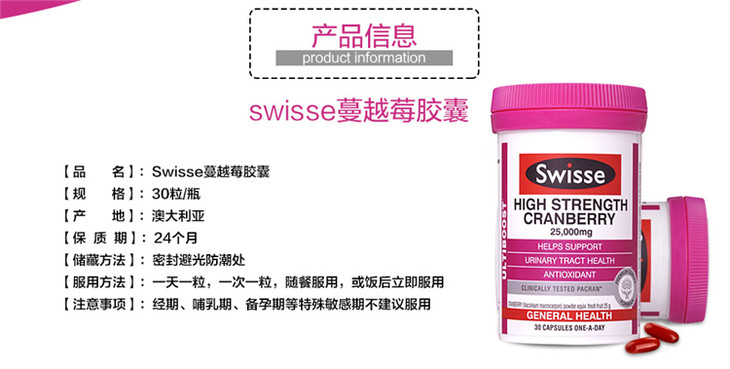 【保税仓】澳洲斯维斯swisse蔓越莓胶囊高浓度精华30粒 商品图0