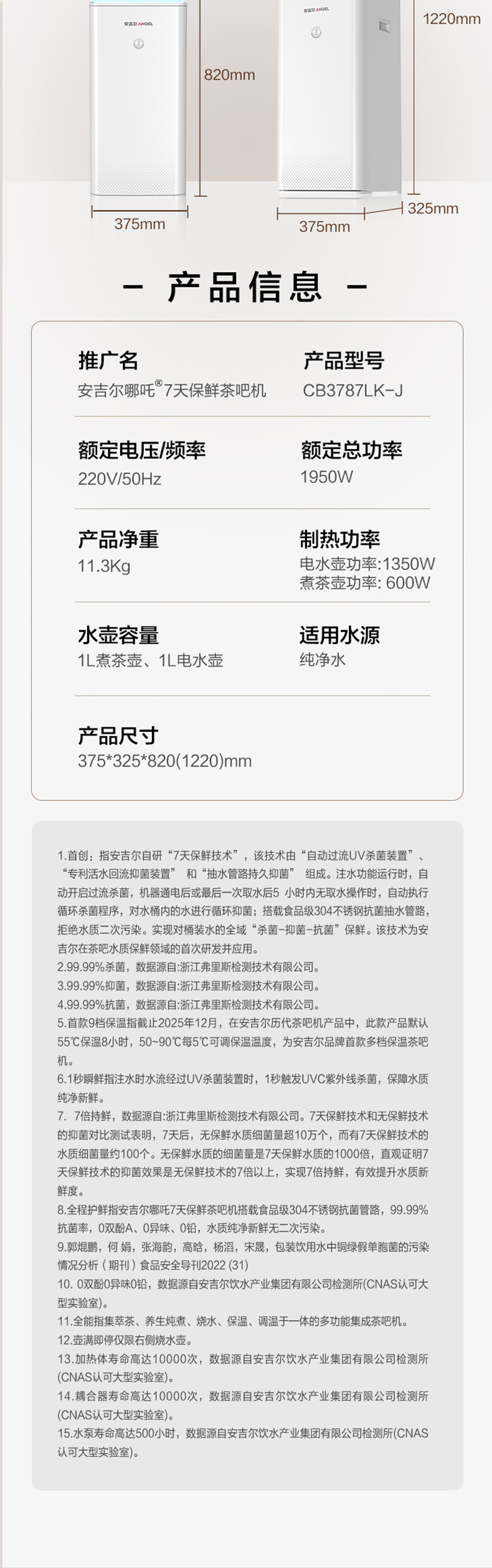 安吉尔哪吒7天保鲜茶吧机CB3787LK-J