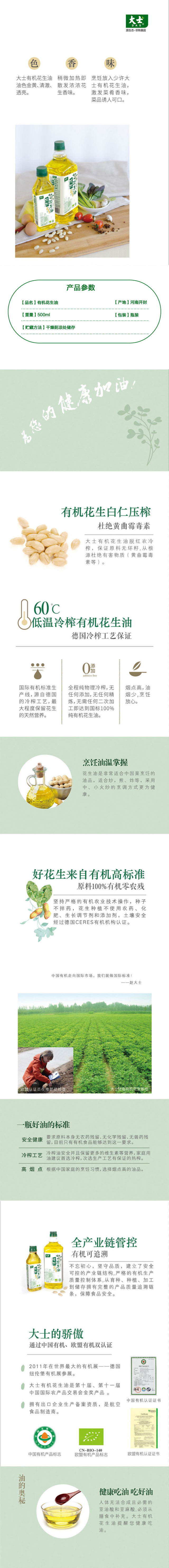 有机花生油 500ml/瓶(中国有机认证)
