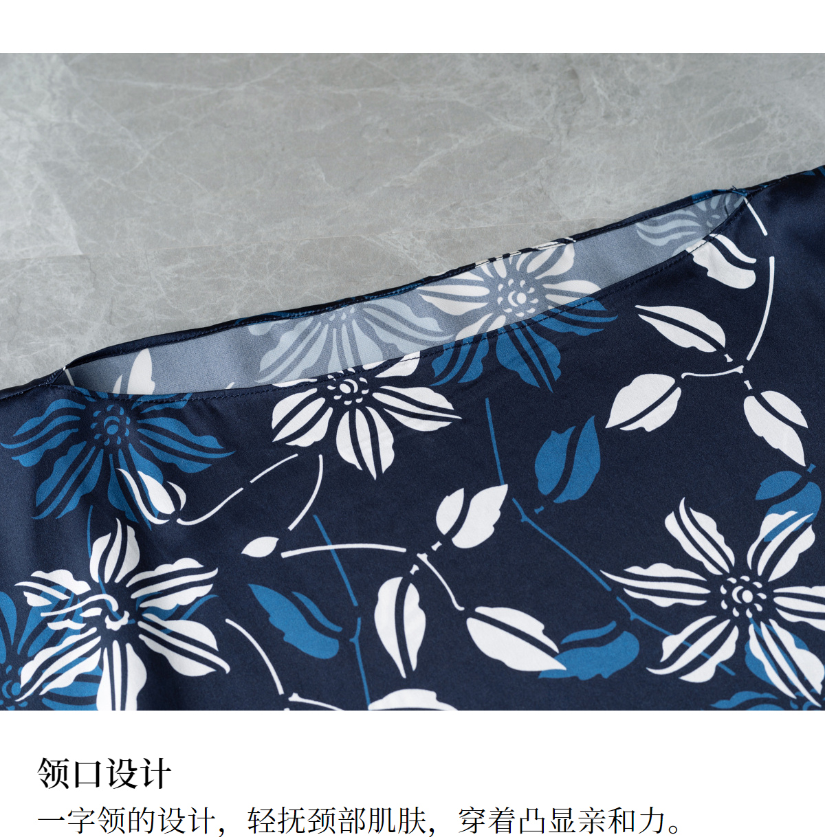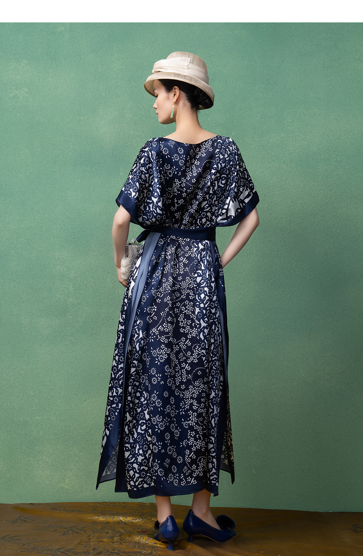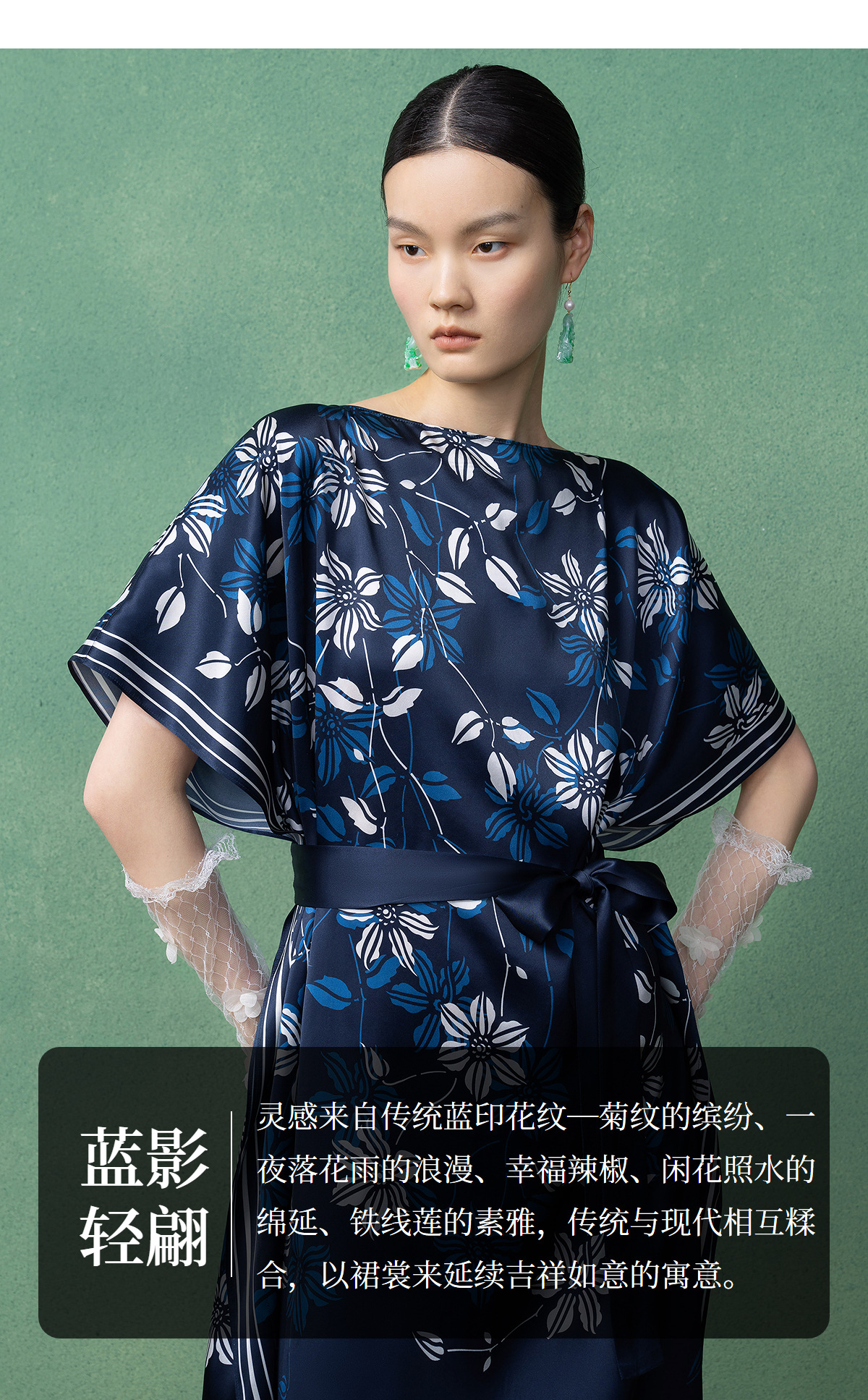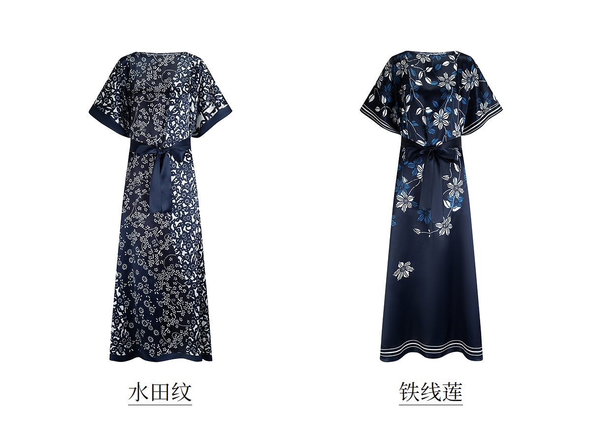 【林栖设计小店】(现货)真丝素绉缎连衣裙多色复古传统蓝印花铁线莲花纹2025春夏新品长裙女T1952348