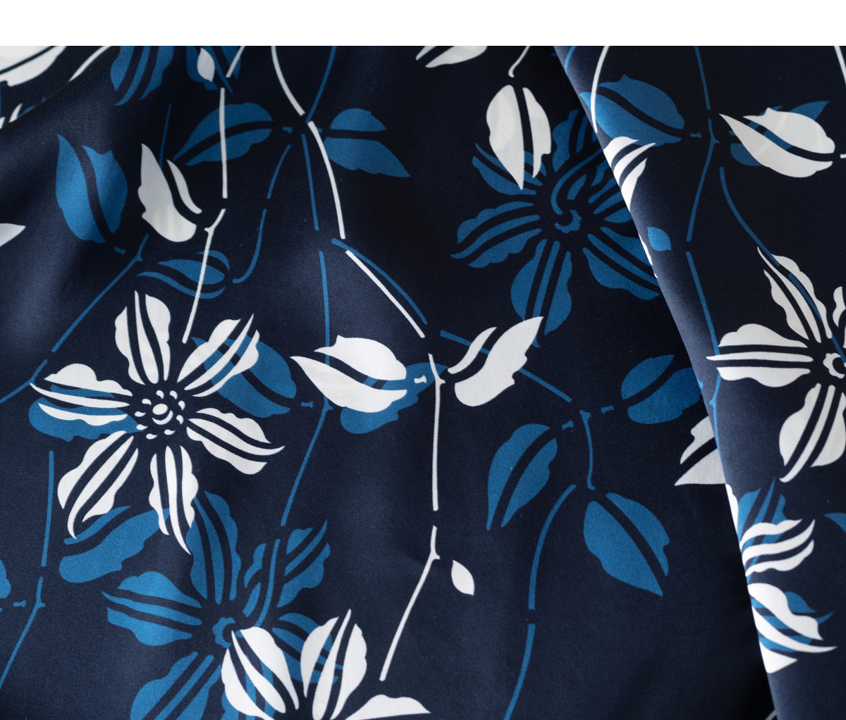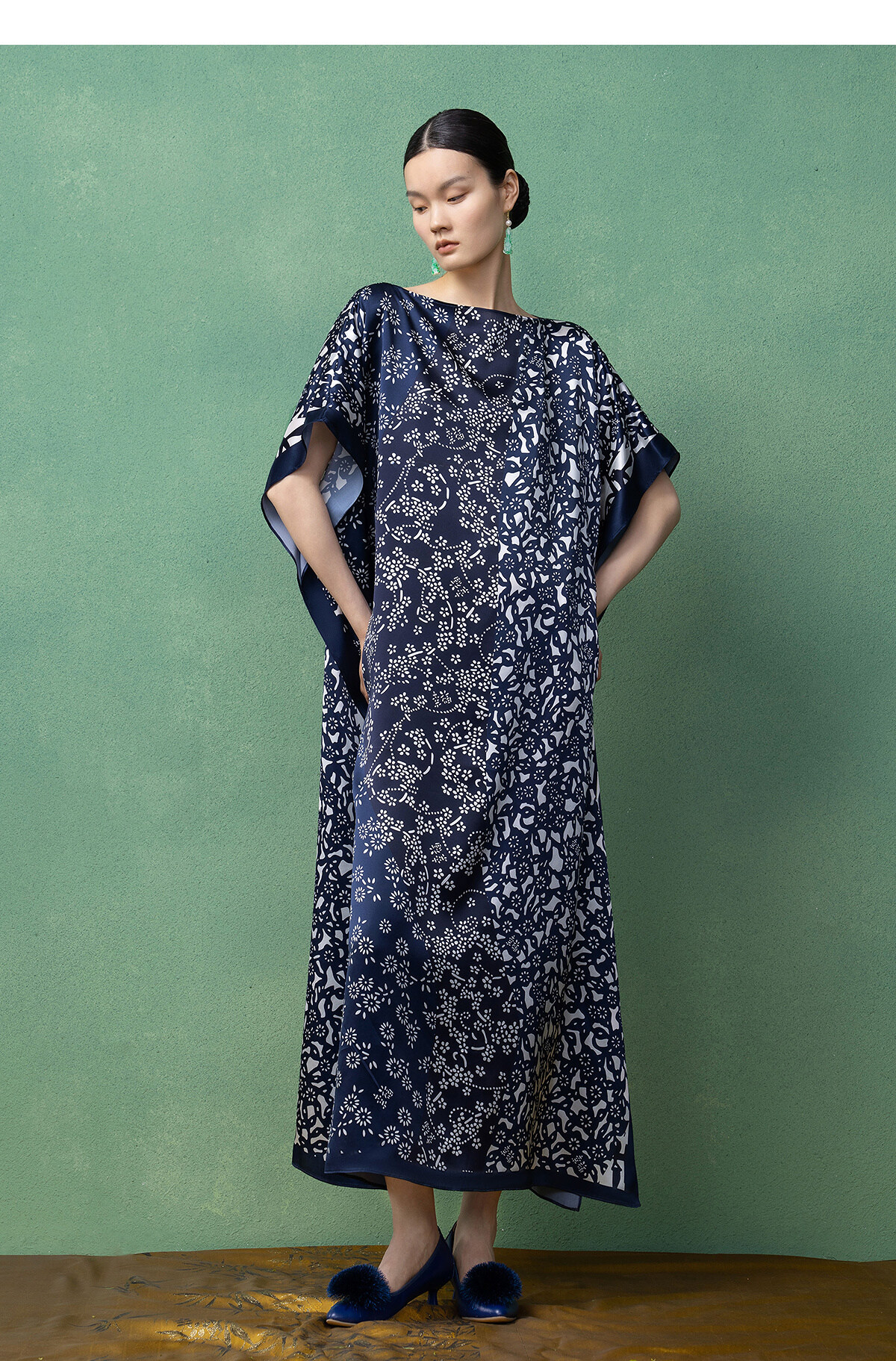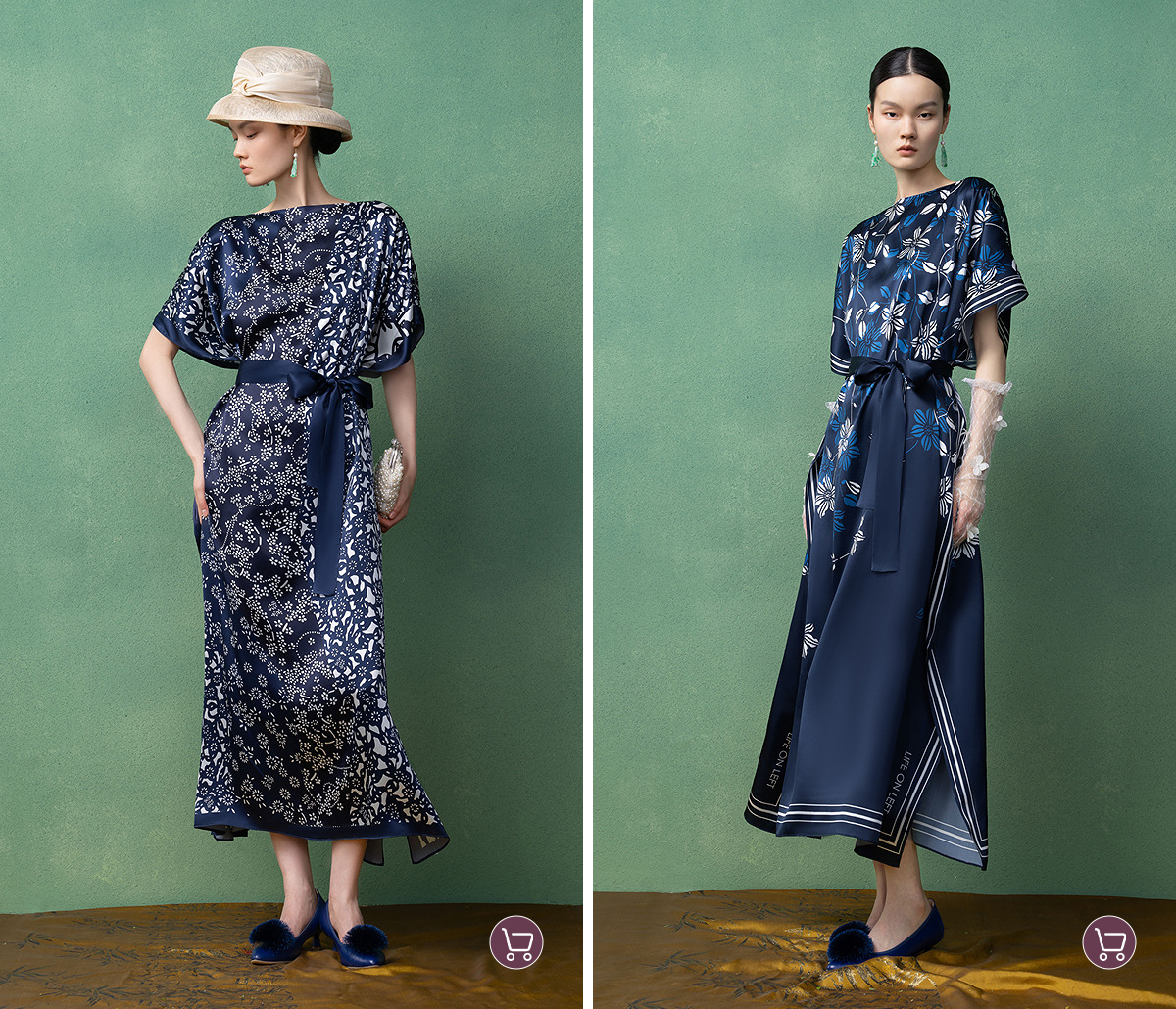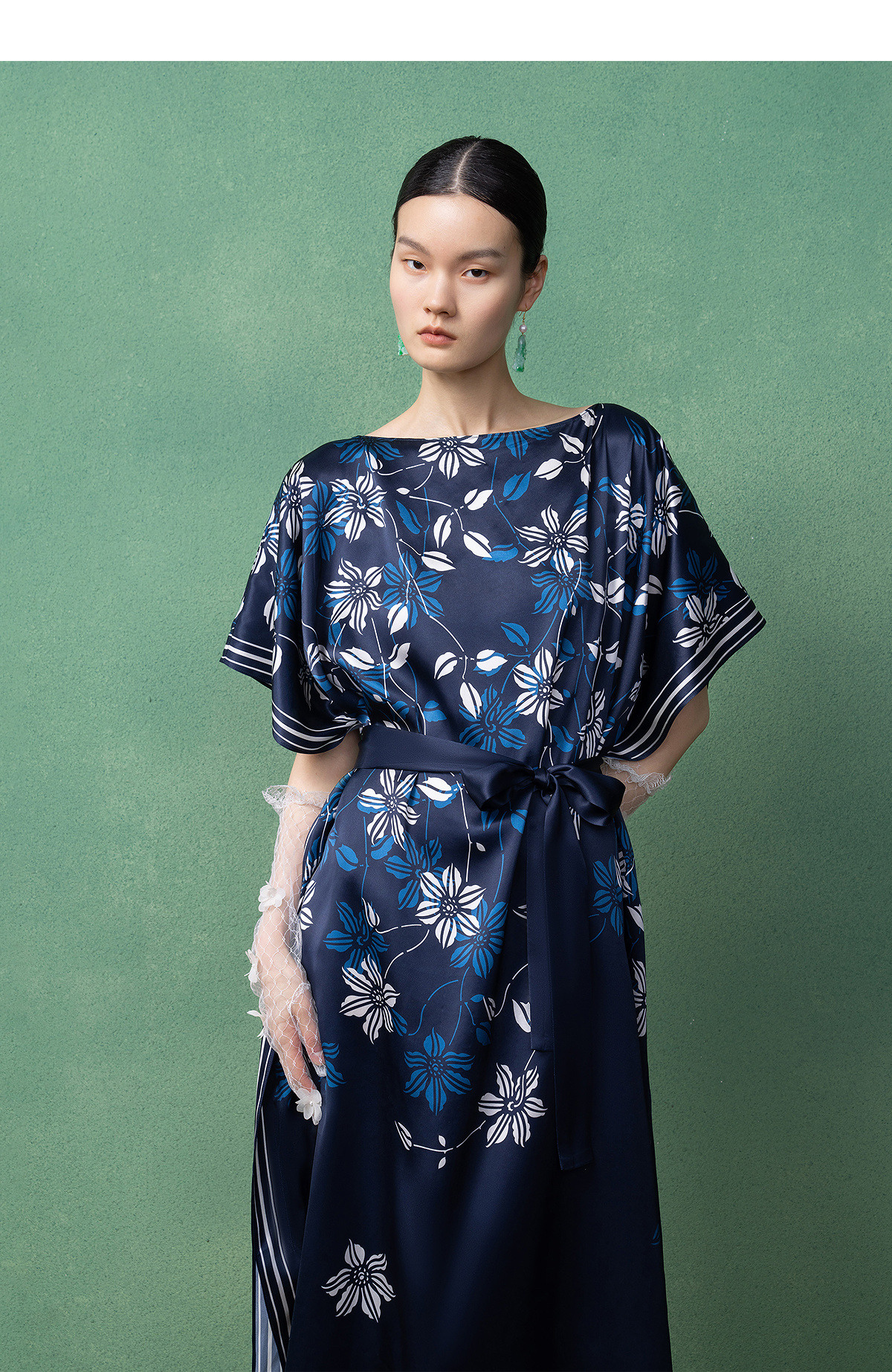 【林栖设计小店】(现货)真丝素绉缎连衣裙多色复古传统蓝印花铁线莲花纹2025春夏新品长裙女T1952348