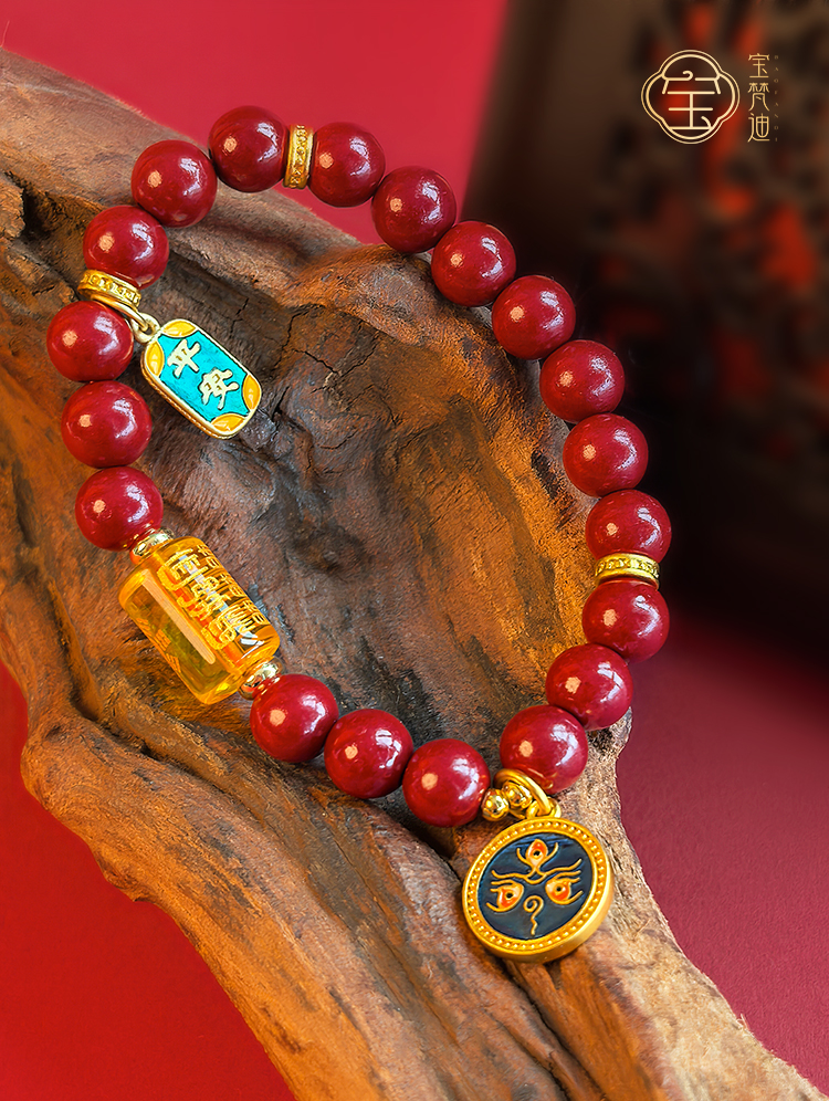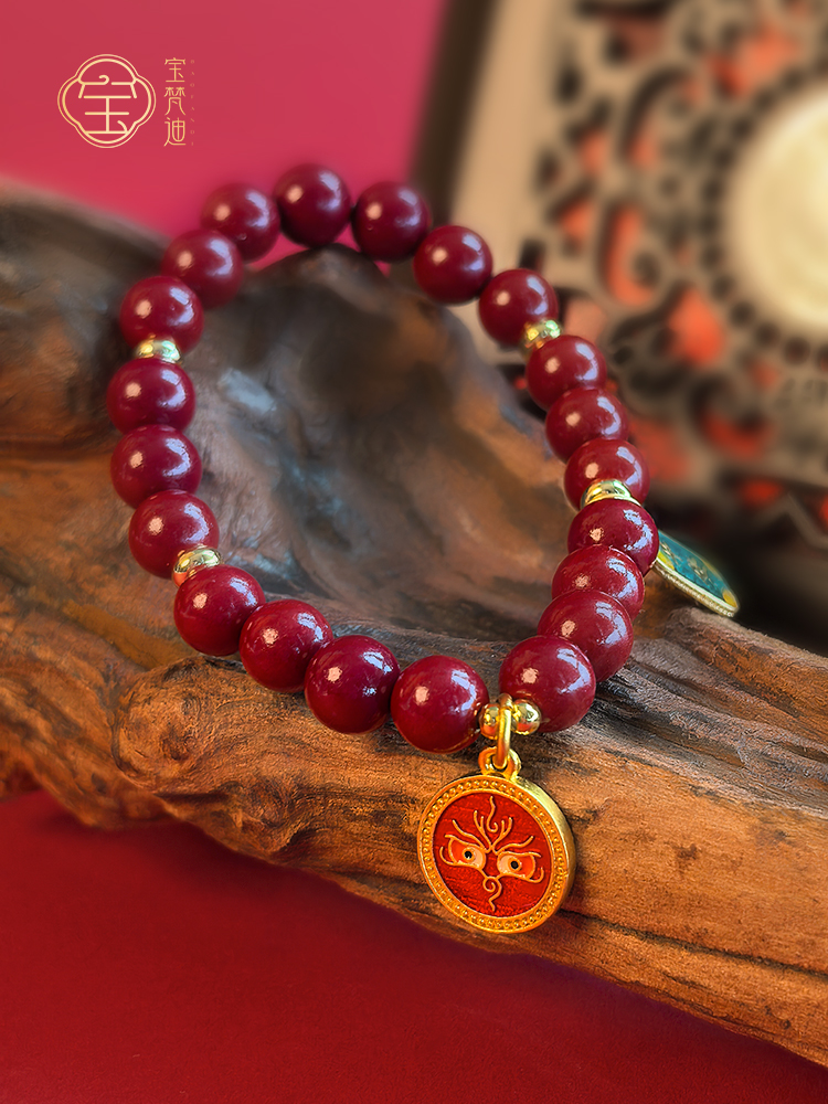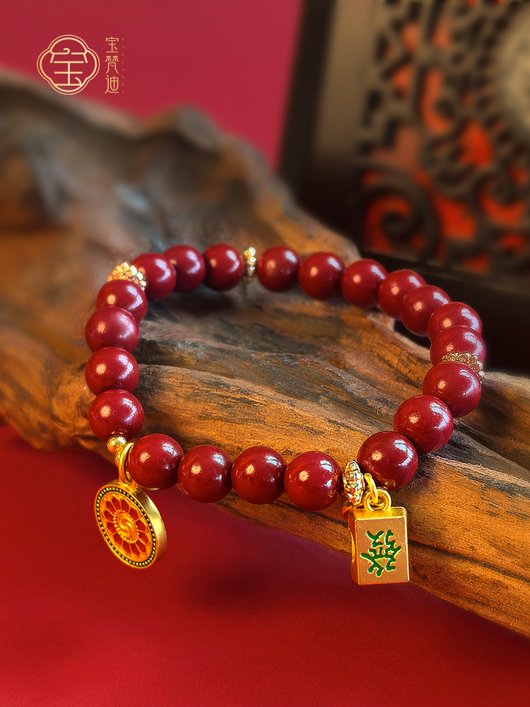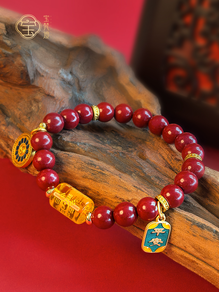 BAOFANDI宝梵迪蛇年朱砂手串五路财神本命年好运手串BF