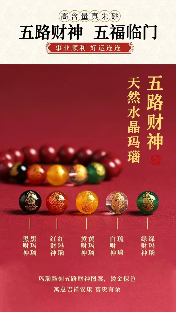 -【五路财神朱砂手串6mm/8mm/10mm】-