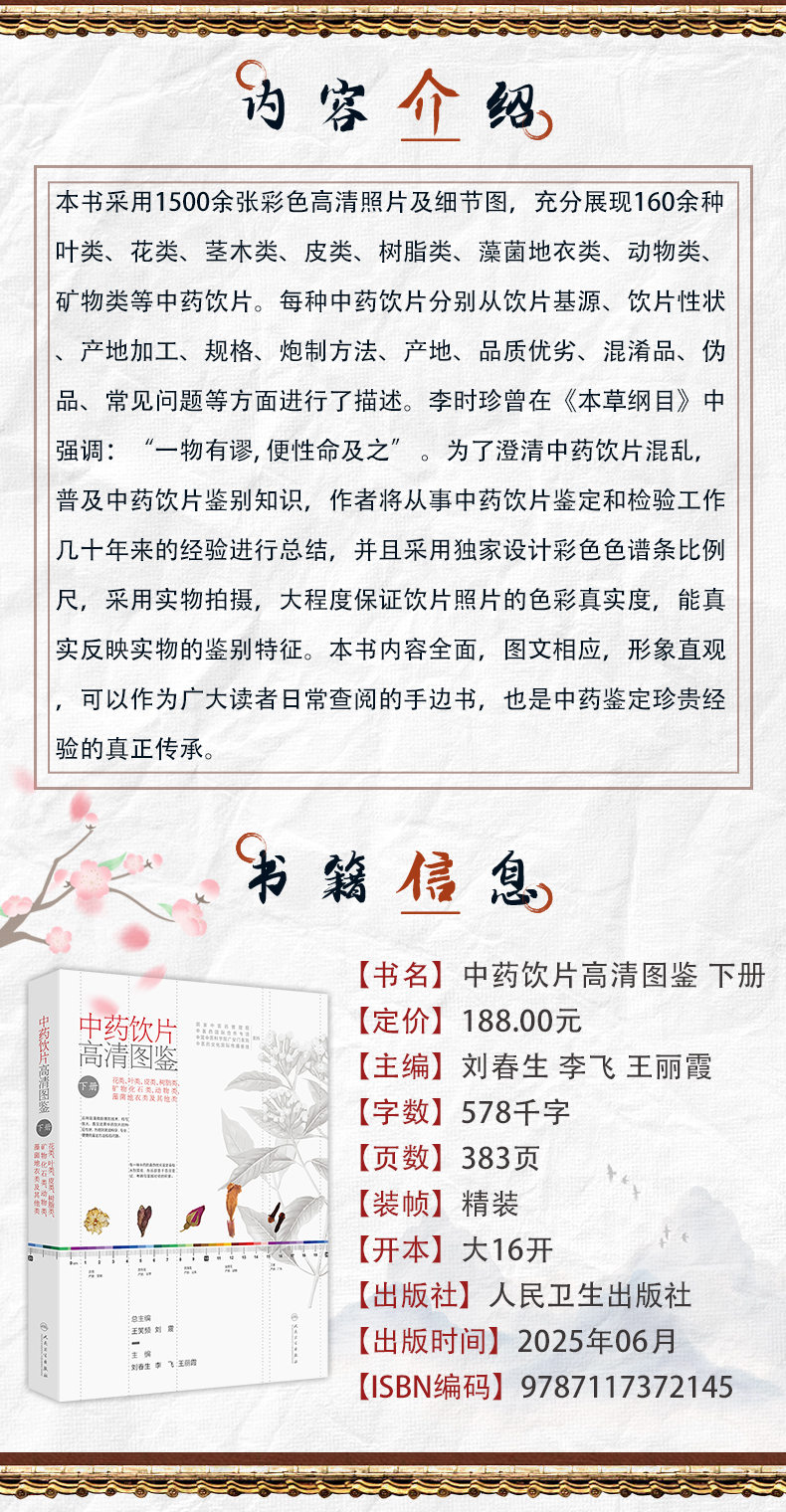 中药饮片高清图鉴下册 花类叶类皮类树脂类矿物化石类动物类藻菌地衣类及其他类 刘春生 李飞 王丽霞 人民卫生出版社9787117372145