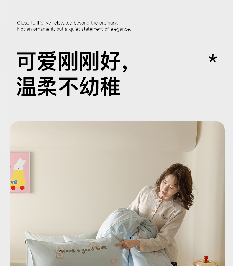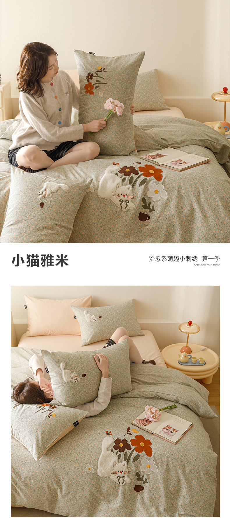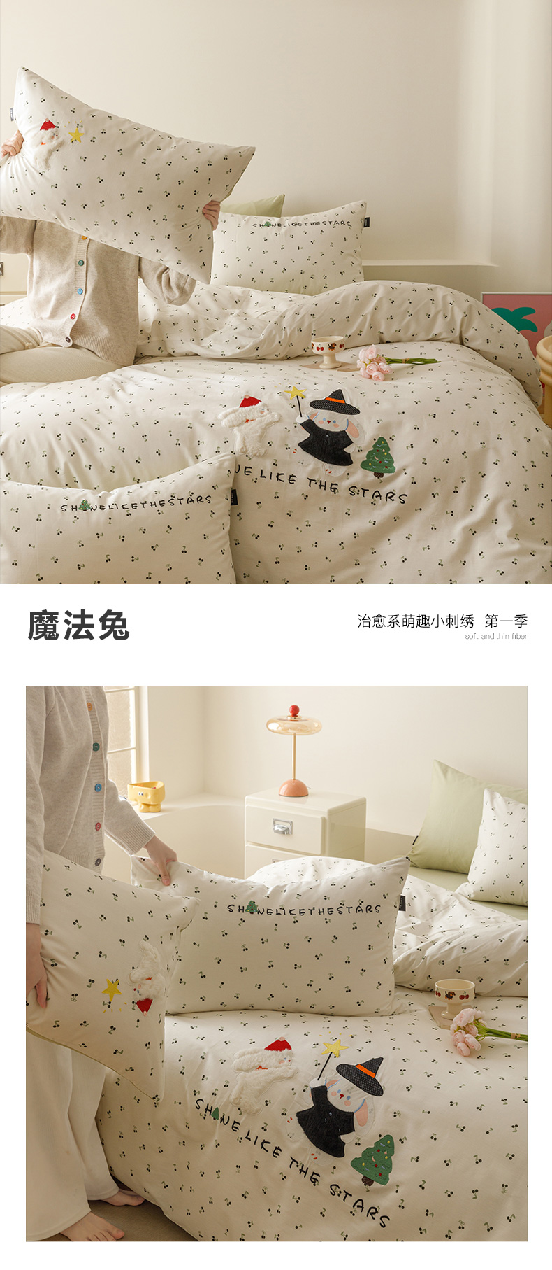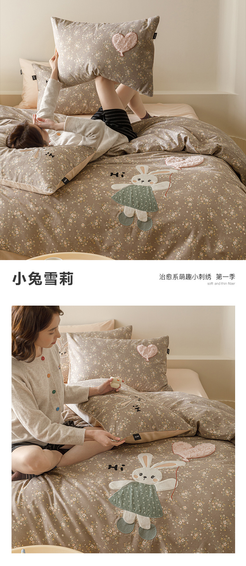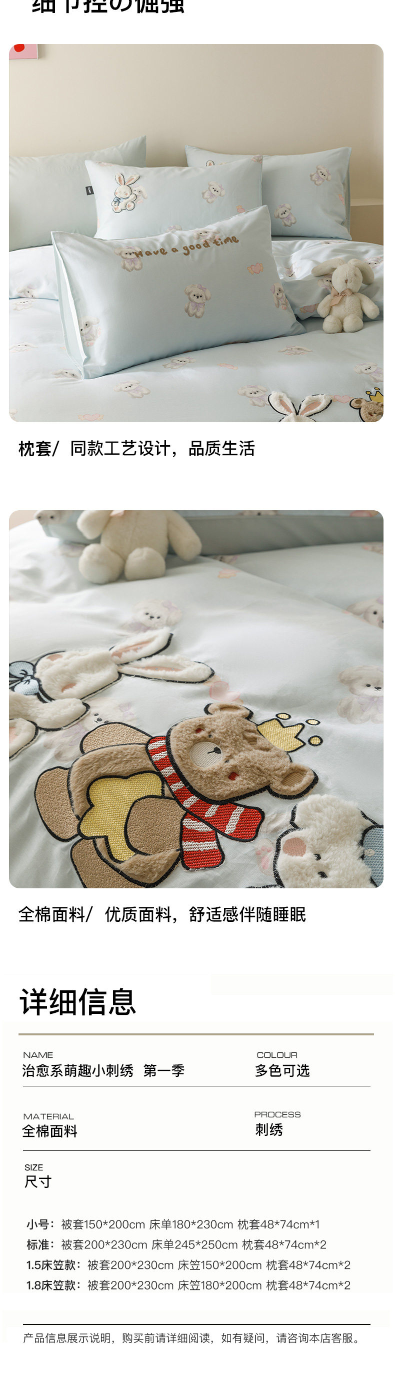 春夏呆萌小刺绣全棉四件套 柔韧透气耐磨纯棉套件