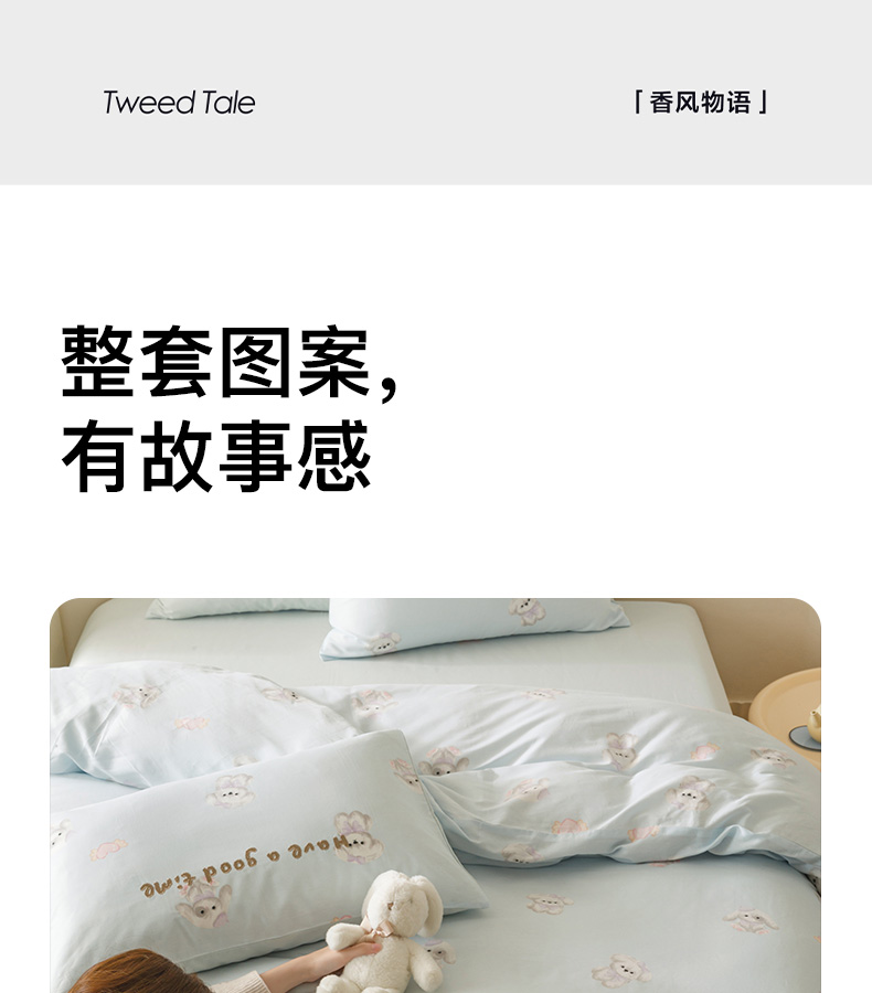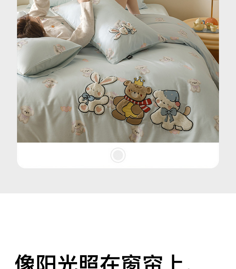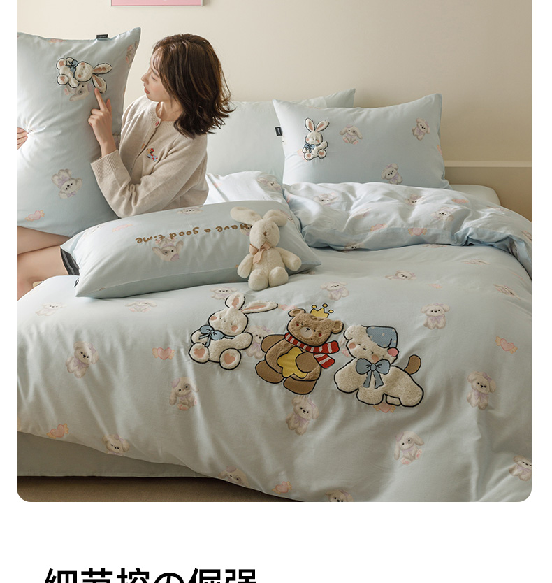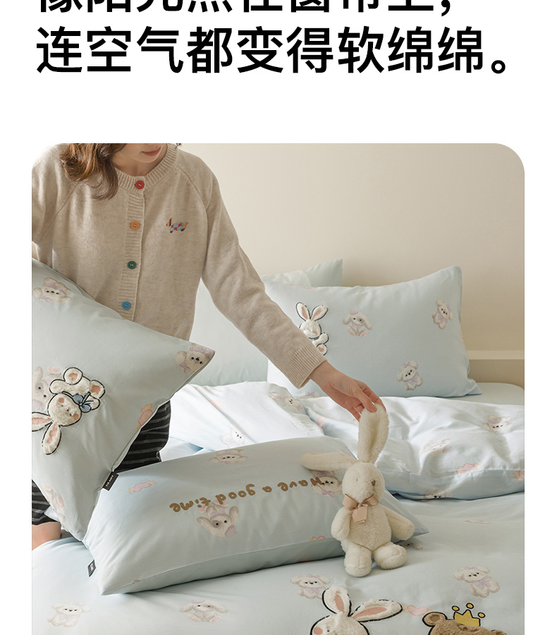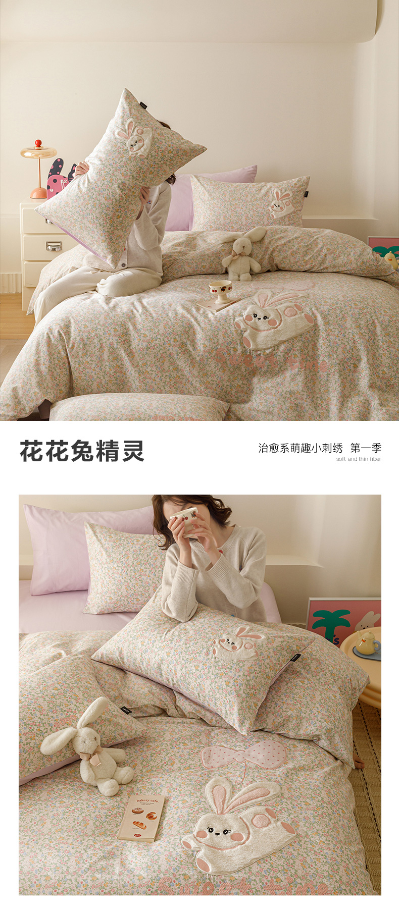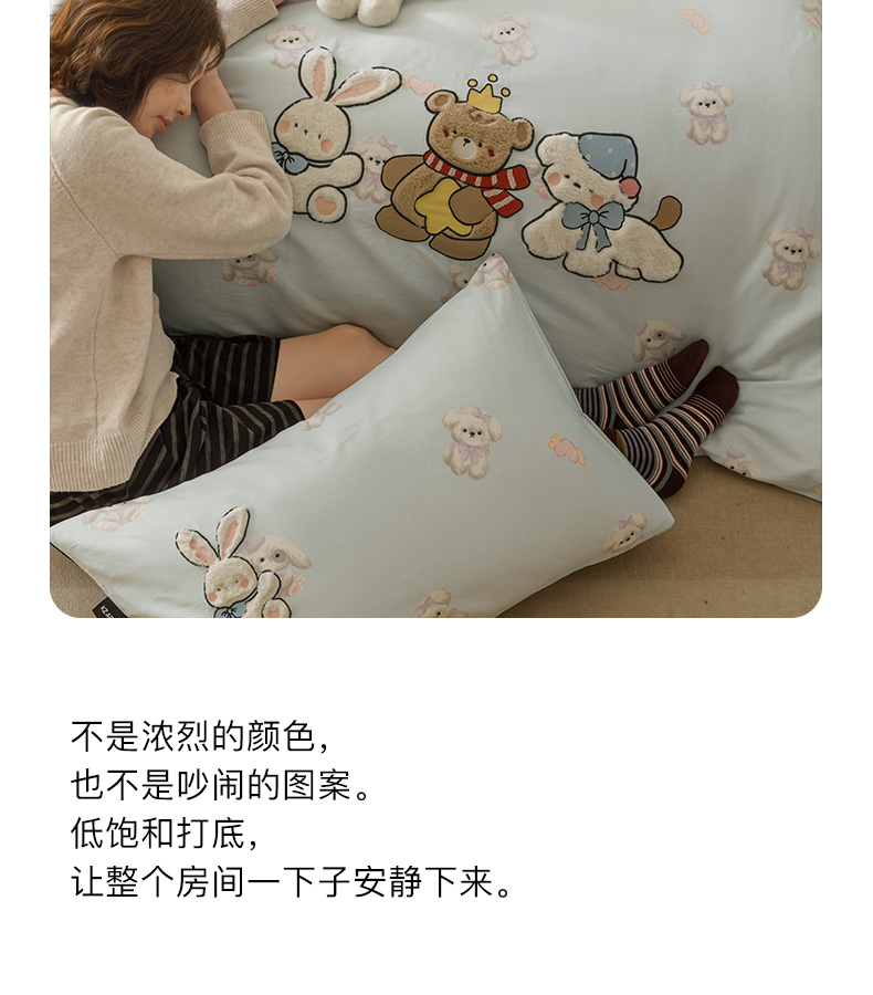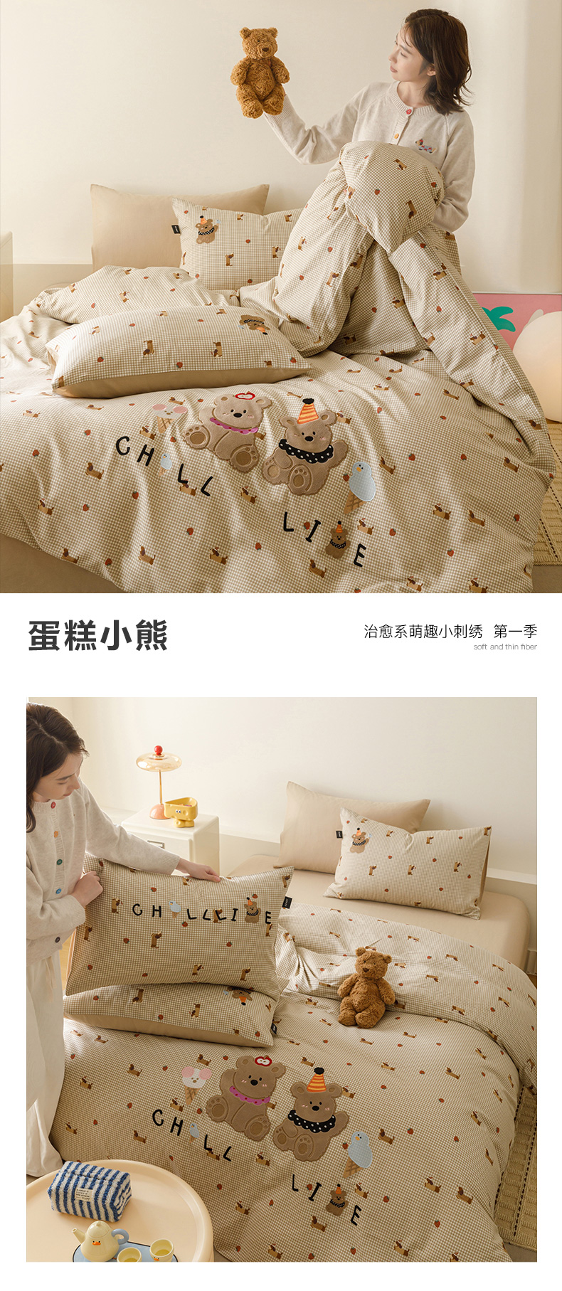 春夏呆萌小刺绣全棉四件套 柔韧透气耐磨纯棉套件