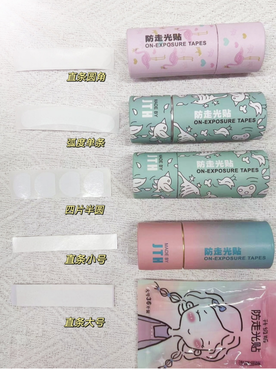 这个防走光贴原理跟双面胶很相似 一面直接贴着皮肤一面贴着衣服 可以让衣服紧贴防止走光 反正哪里怕走光贴哪里 我每次出去玩稍微露一点的我都会贴 一整天下来就算是出汗它也不会掉,很好用~ 便携小桶装,方便随身携带,小桶装设计 随时打开合上,方便取拿,小巧易携带 裁剪随意,更受喜爱 五种款式,满足你的全部需求