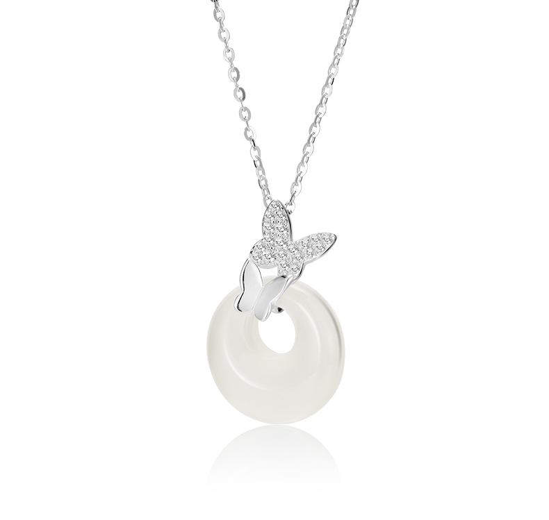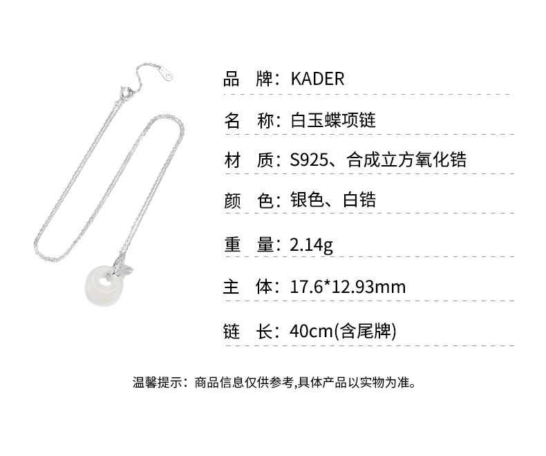 KADER卡蒂罗 闪钻玉石蝶项链 S925银吊坠 气质百搭锁骨链 女款项链 银白色 送女生送礼物