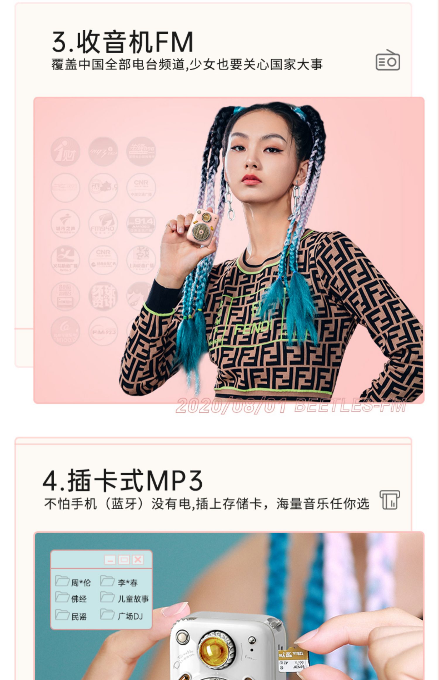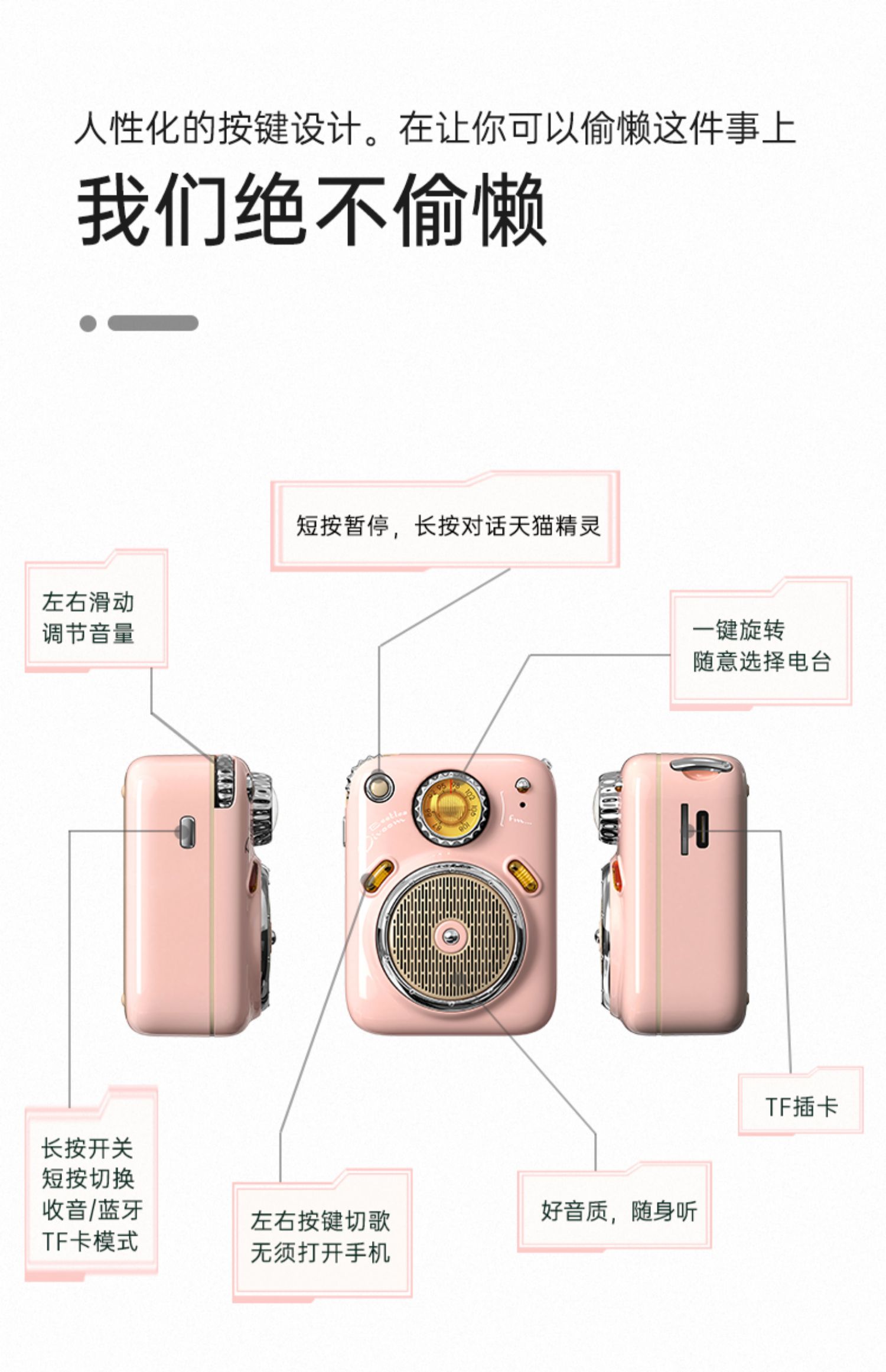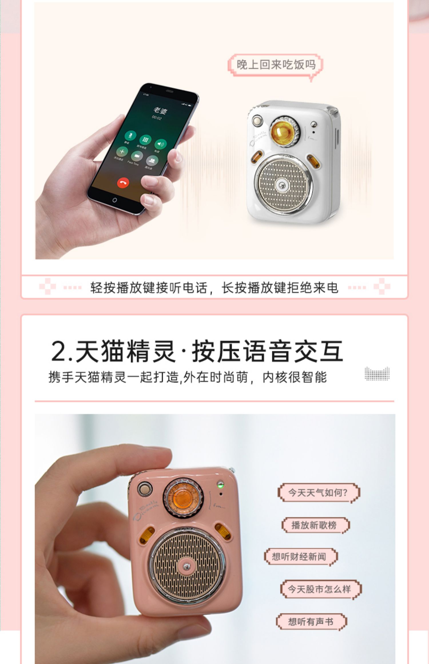 Divoom甲壳虫音箱|蓝牙智能低音炮迷你便携式收音机户外小音响