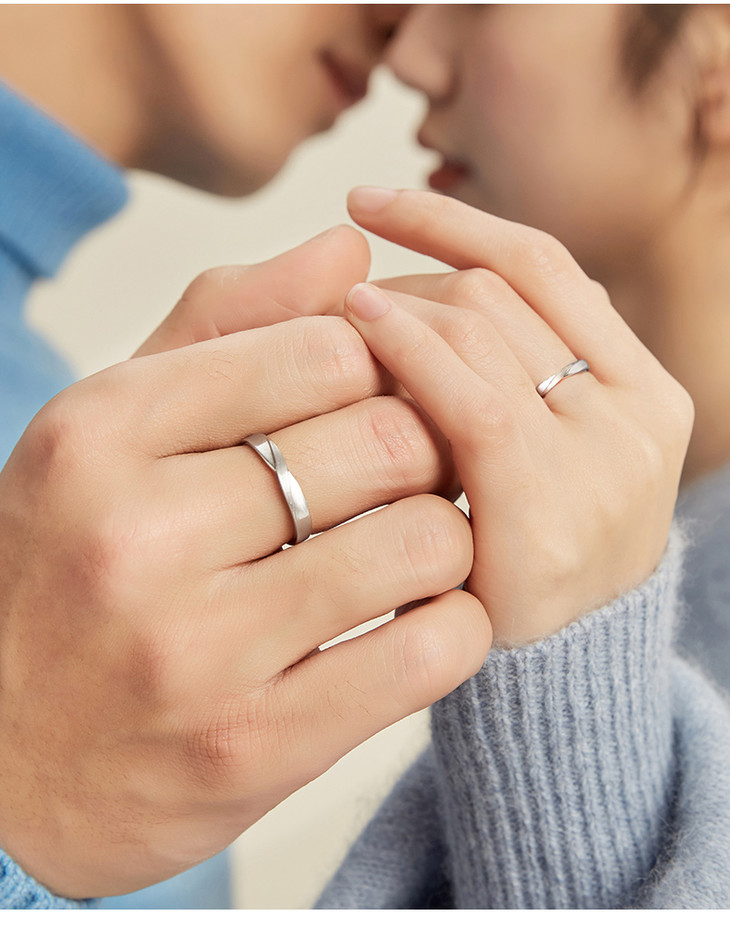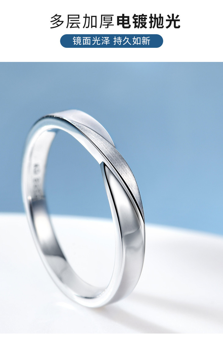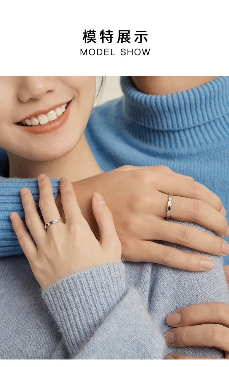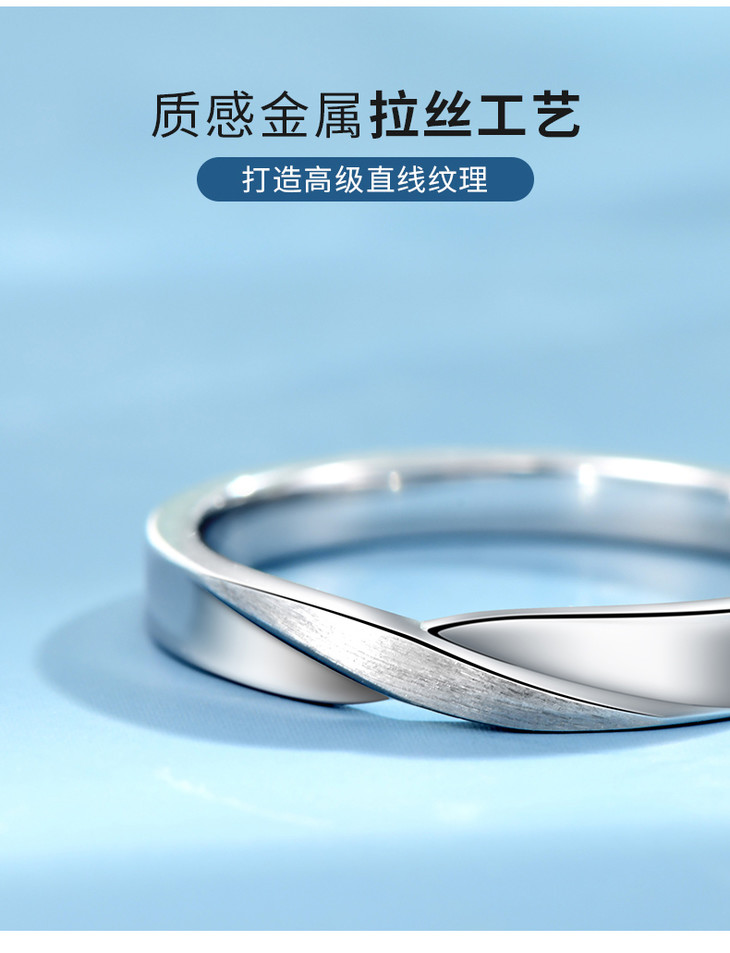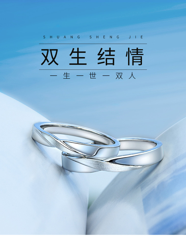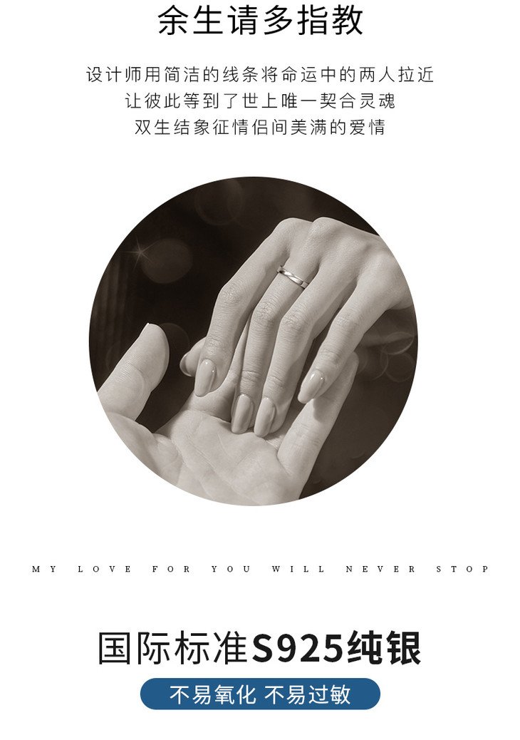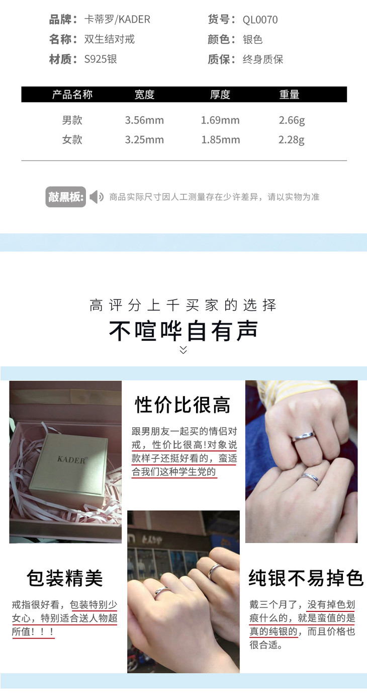 KADER卡蒂罗 双生结对戒 单戒 S925银素圈 对开口可调节一对刻字素圈戒指女小众设计 男女同款情侣款 送礼 礼盒款