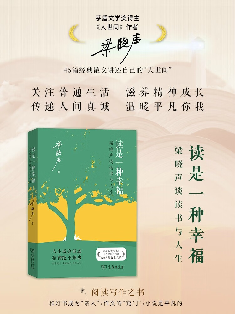 《读是一种幸福:梁晓声谈读书与人生》汇集了梁晓声谈读书与人生之路的经典散文,文字真诚质朴、幽默温暖,作家的笔在坚与柔之间变换,从心态上精神上感情上紧贴大众。全书有3辑,45篇文章。辑一为“书中岁月长”,主要讲述书籍对作者生命“底色”的影响、读书的思考与写作的感悟。读书有什么方法,写作有哪些“窍门”与“规律”,皆可从中获得启发;辑二为“安顿好内心”,青少年、中年人该如何安顿好内心,作者是如何面对困境的,积极之人生当如何,人生的意义是什么,看他人之人生观,也是在向内找到真实的自己;辑三为“情深人世间”,作者对亲人、友邻、陌生人的挚爱,关于父父子子、爱情婚姻、焦虑孤独的思考,浸润于人间烟火处的情愫与胸怀格外打动人心。