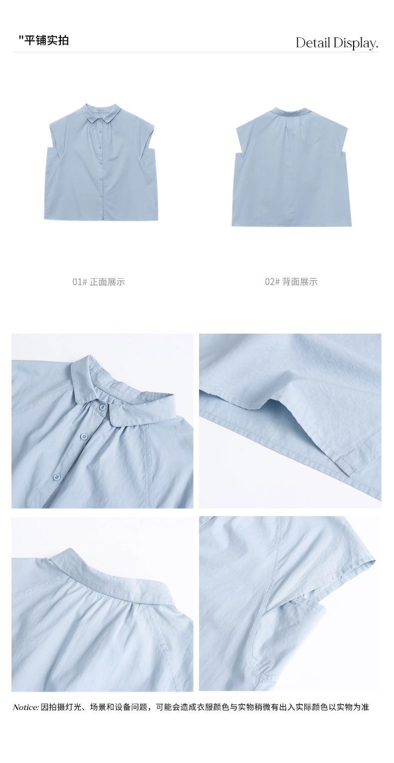 减龄娃娃领压褶小飞袖衬衫