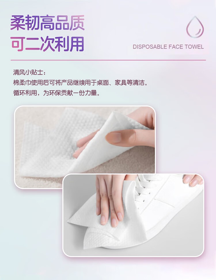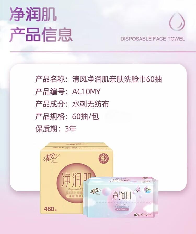 清风净润肌亲肤洗脸巾60抽8包(QF)