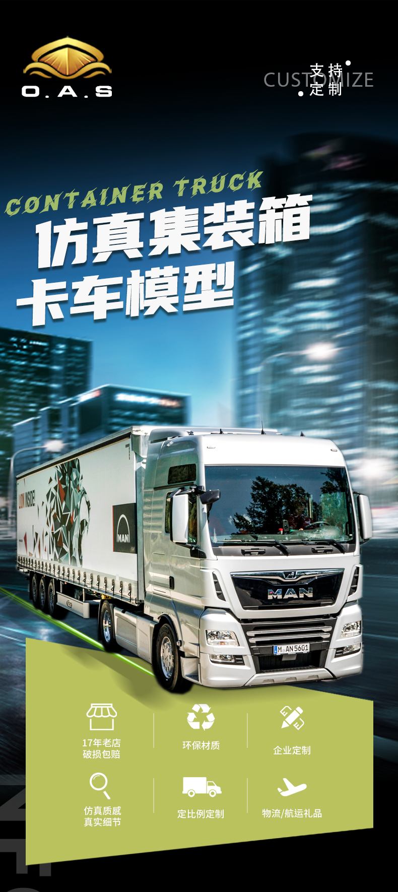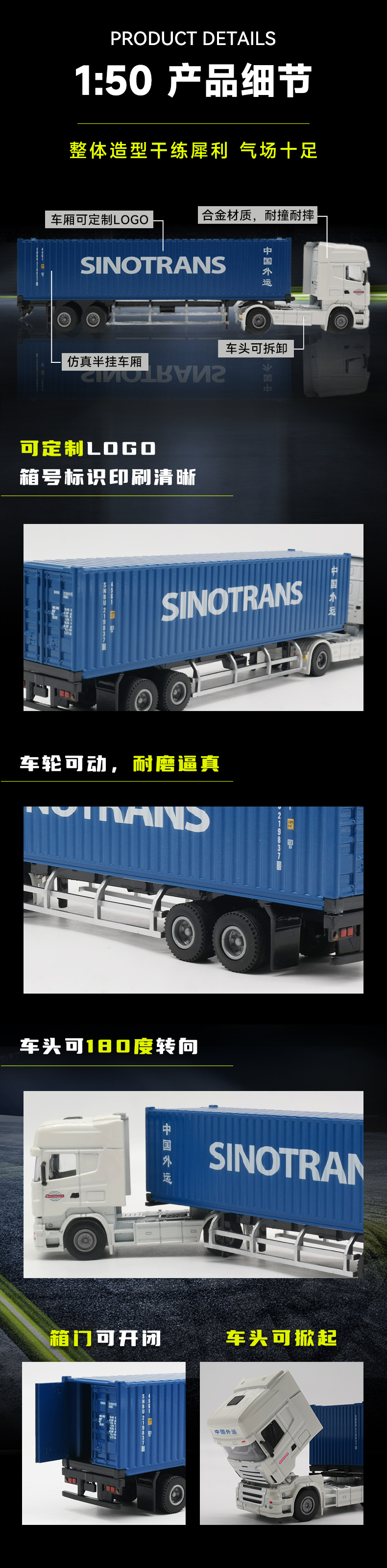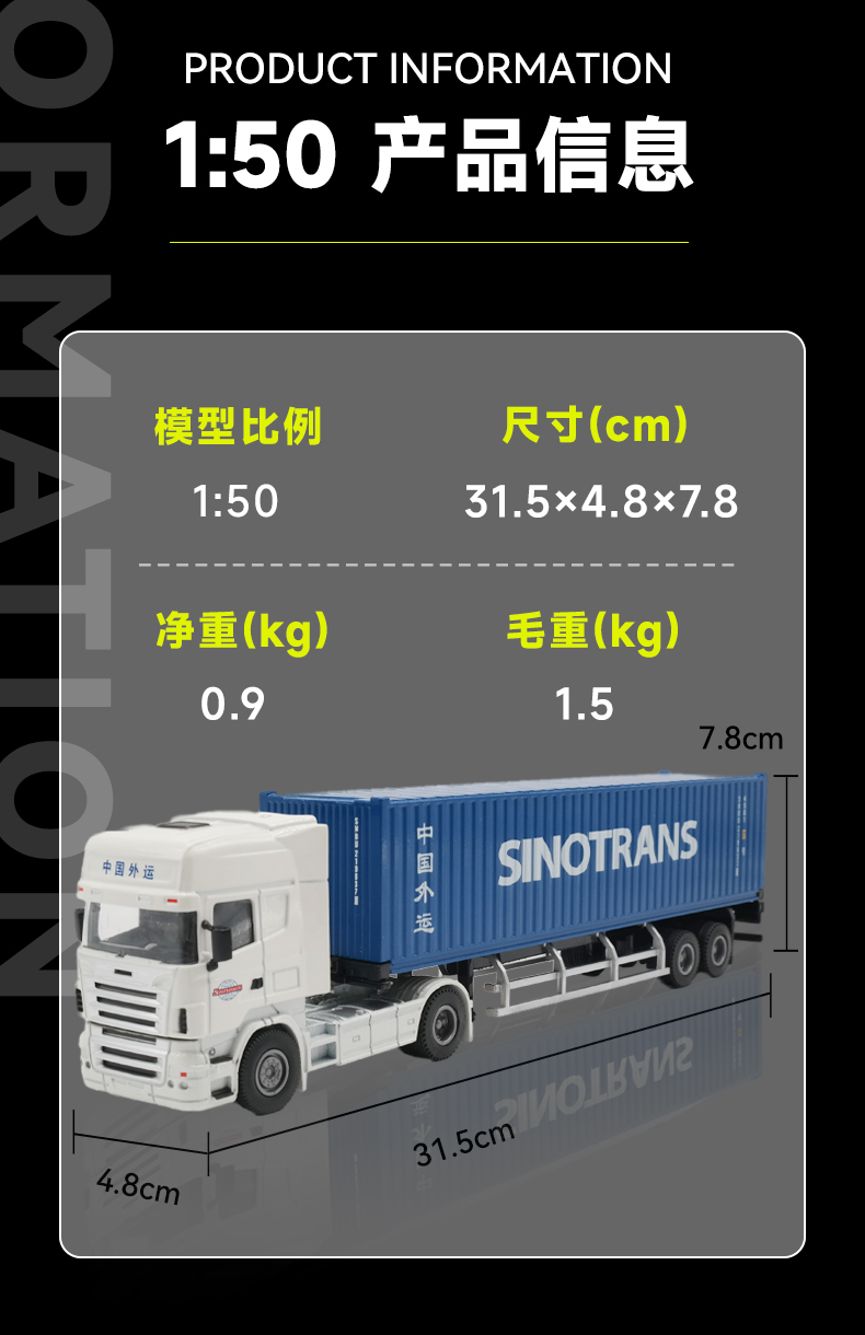 【预售】中外运合金卡车模型 合金材质1:50还原 仿真集装箱卡车 手办送礼宣传(w)
