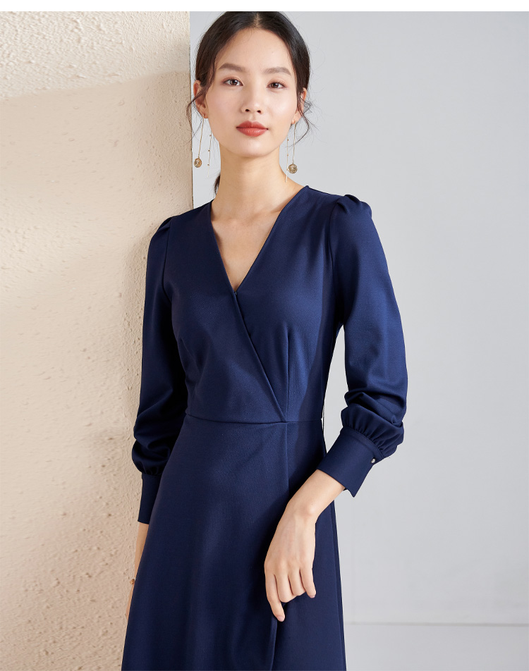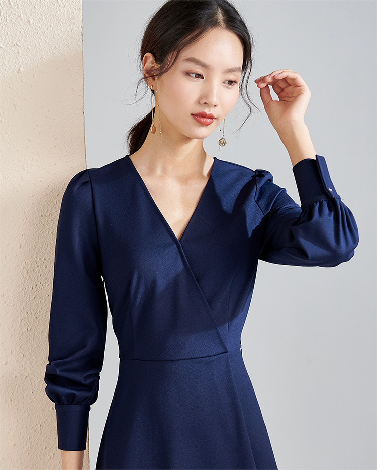 剩S/M 芳外【立体裁剪拼接】新款秋季V领立体拼接A字连衣裙