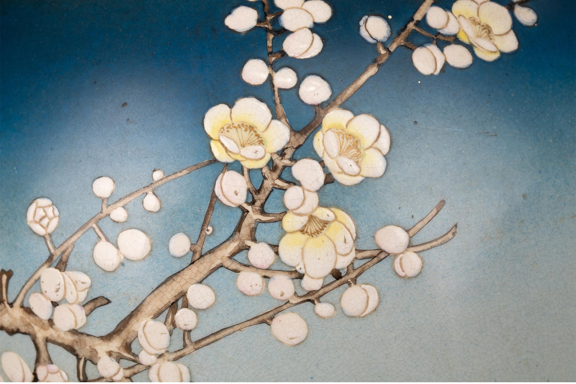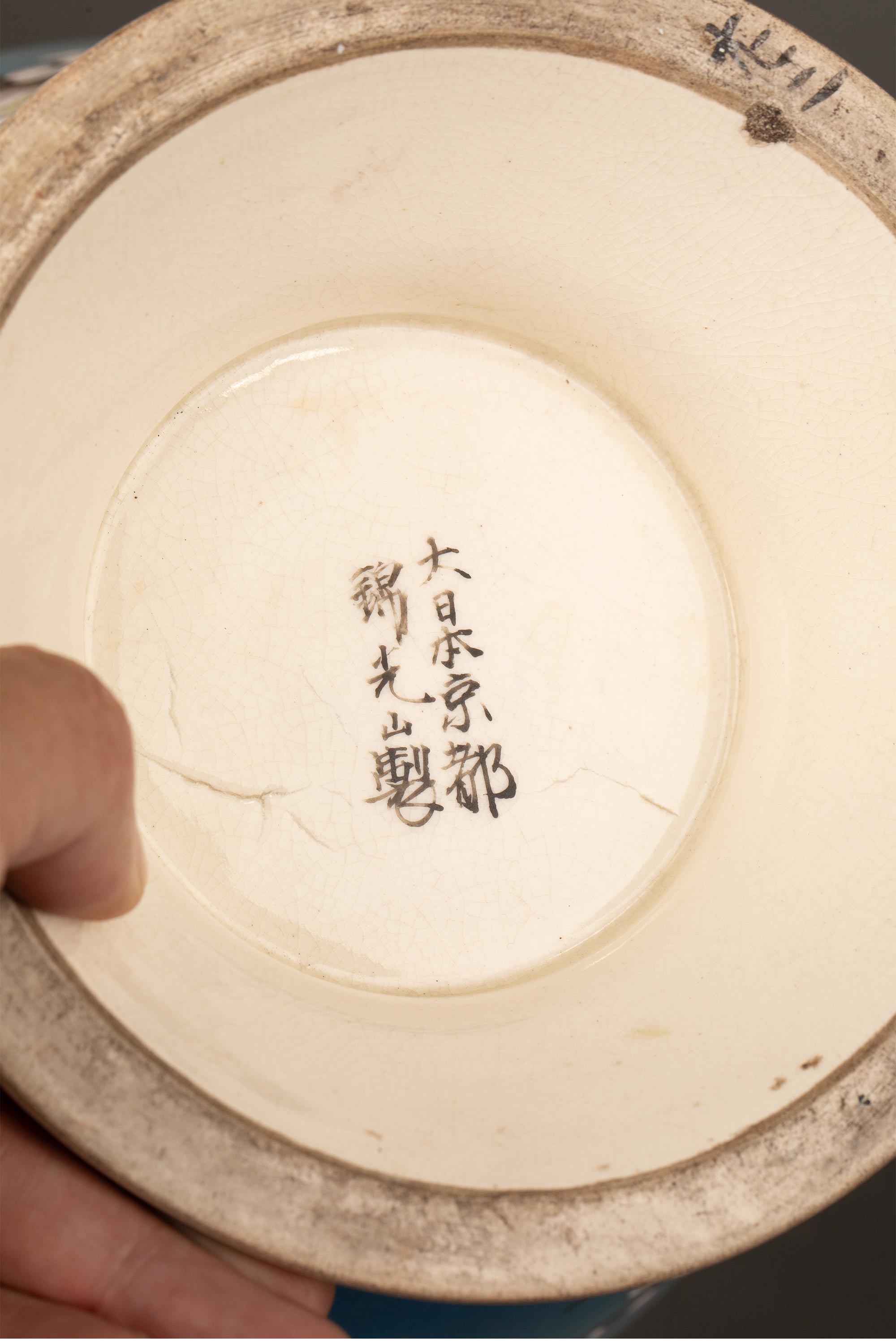 独角鹿西洋古董1900年代日本明治时期出品京都錦光山制款梅花牡丹纹主题蓝地描金彩绘萨摩烧花瓶一对