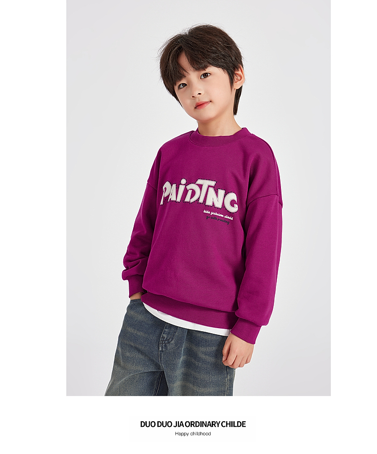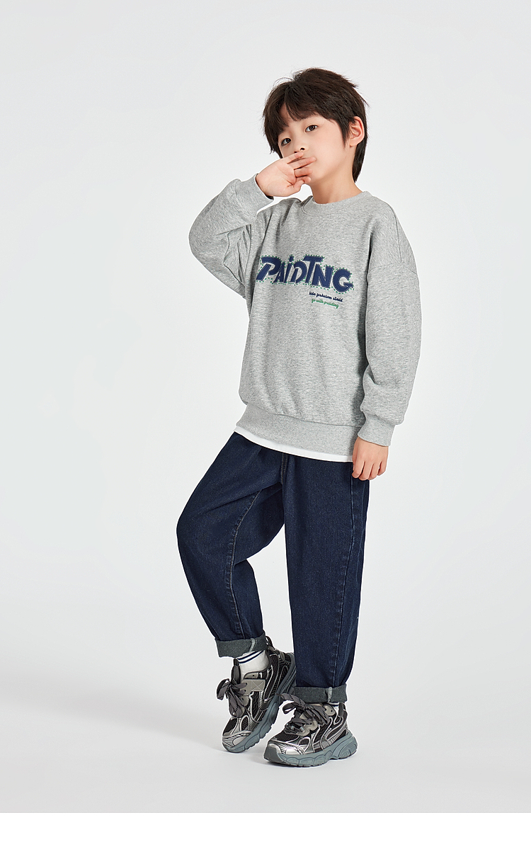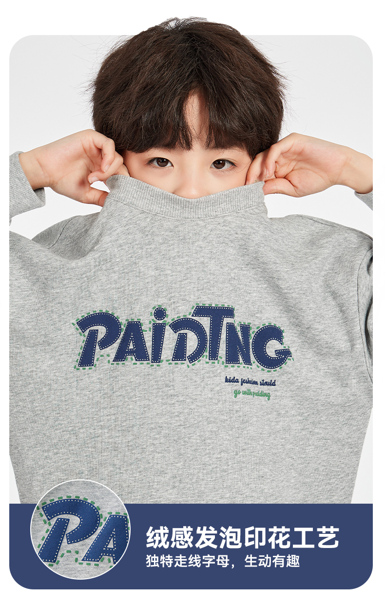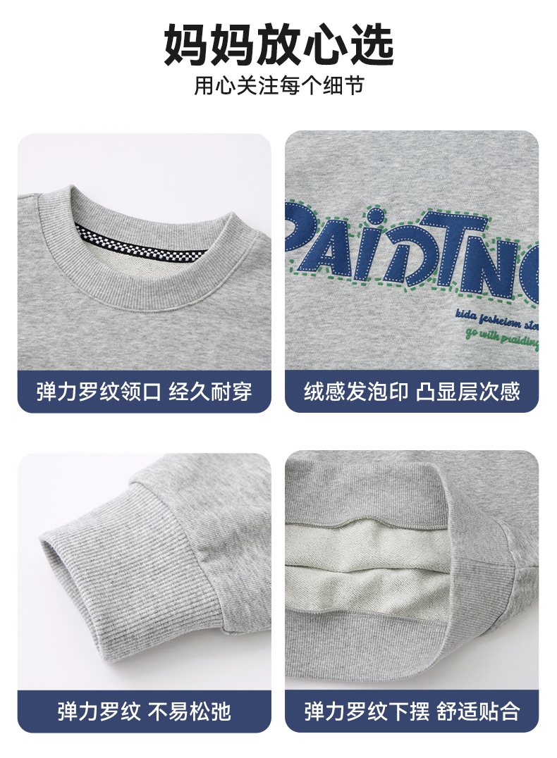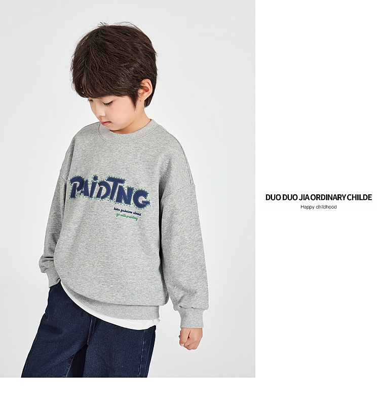 【团购价49.9】多多家男童卫衣2025新款春秋季儿童中大童发泡印花圆领休闲上衣10269