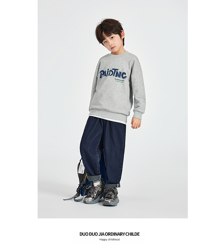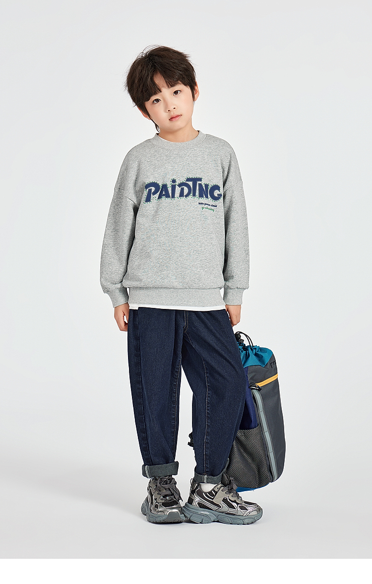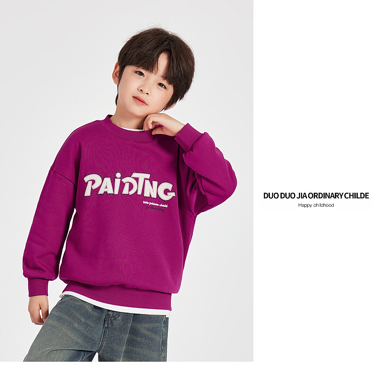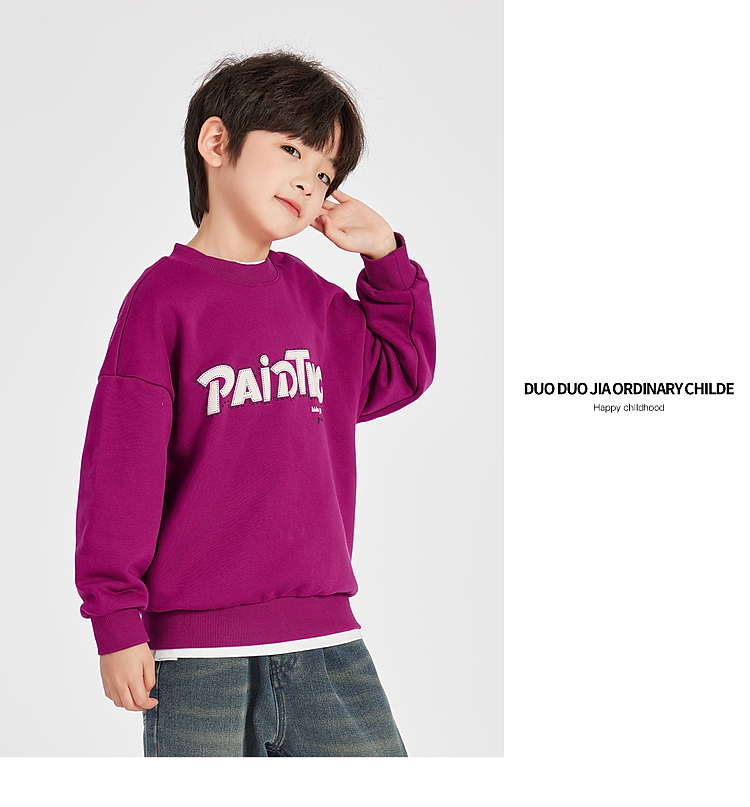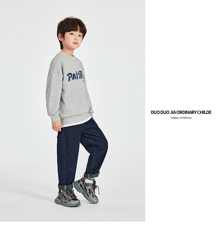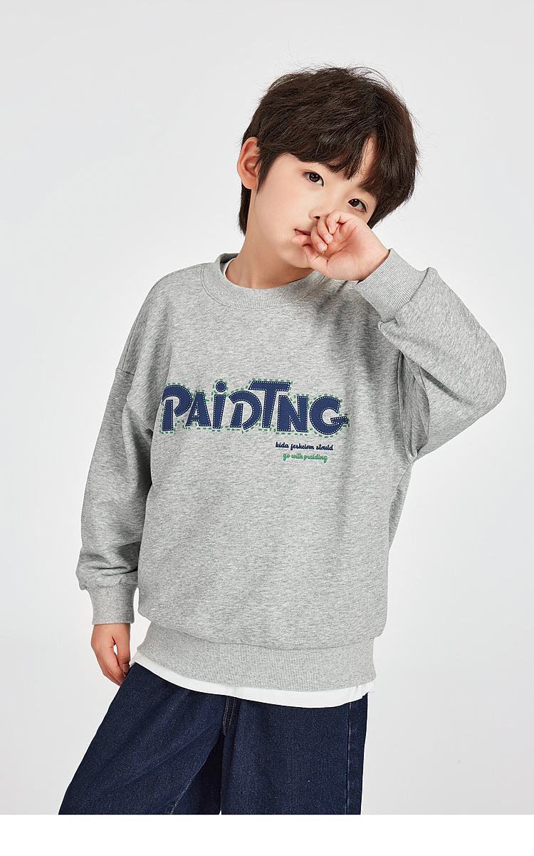 【团购价49.9】多多家男童卫衣2025新款春秋季儿童中大童发泡印花圆领休闲上衣10269