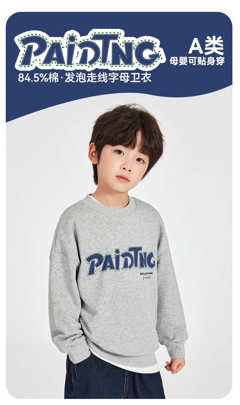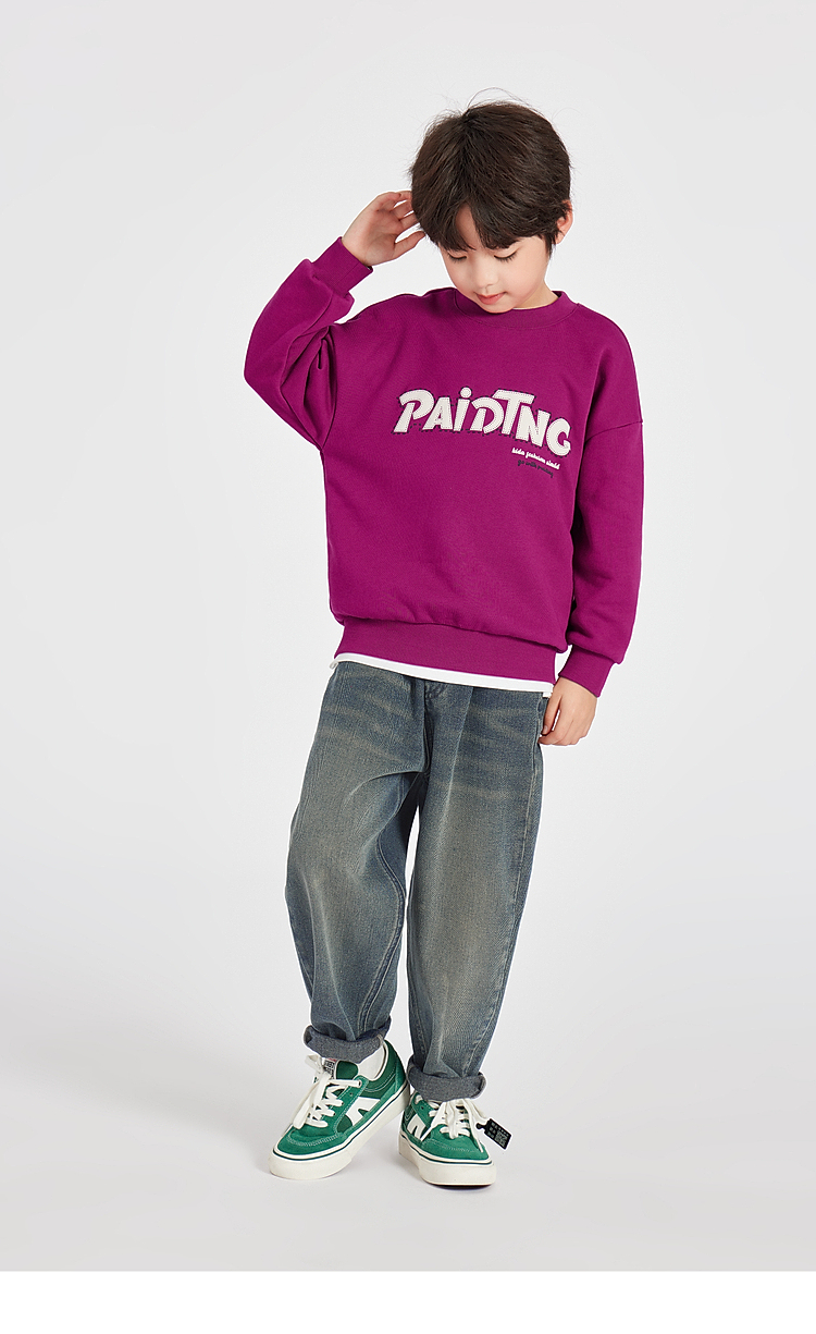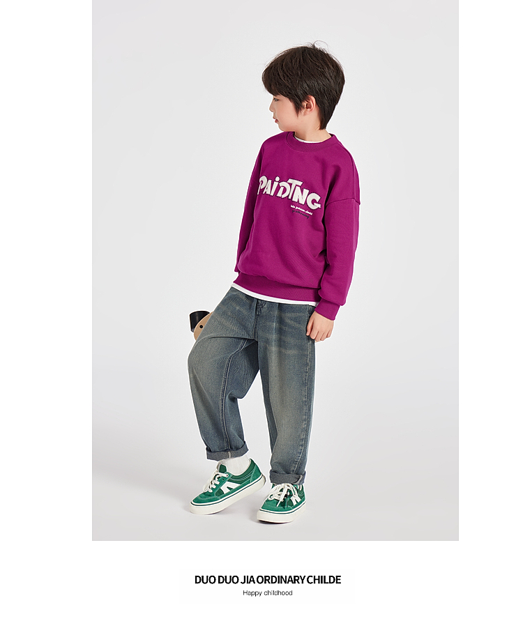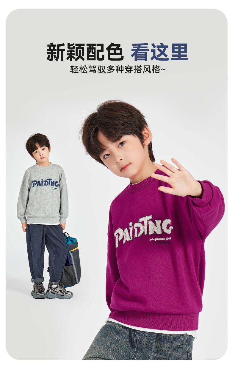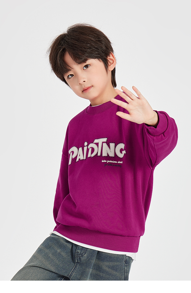 【团购价49.9】多多家男童卫衣2025新款春秋季儿童中大童发泡印花圆领休闲上衣10269