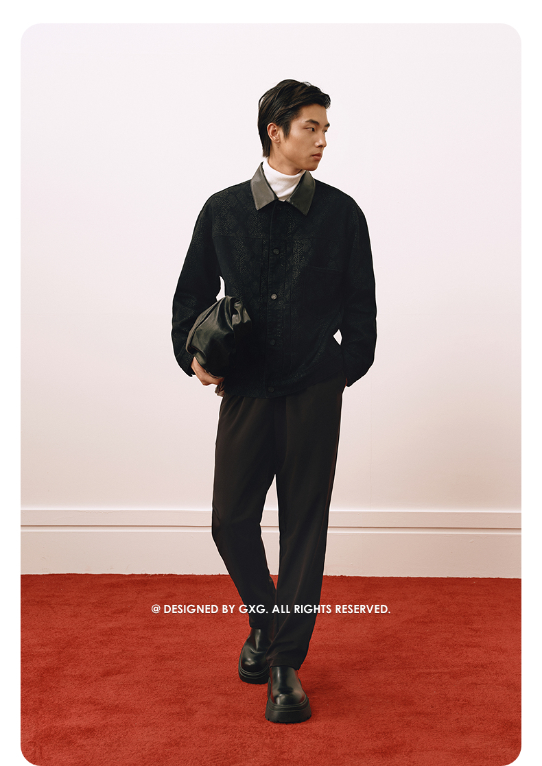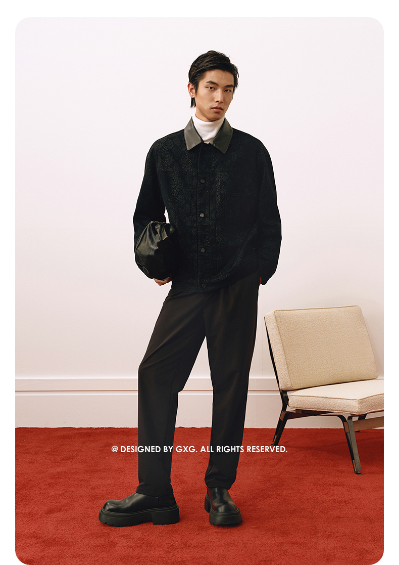 GXG通勤男鞋拼接厚底牛皮板鞋百搭休闲鞋