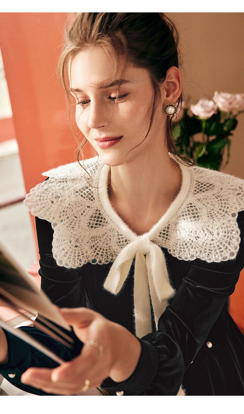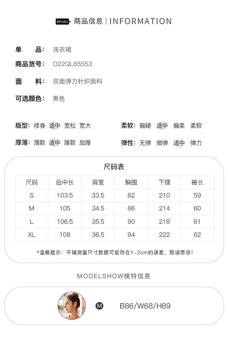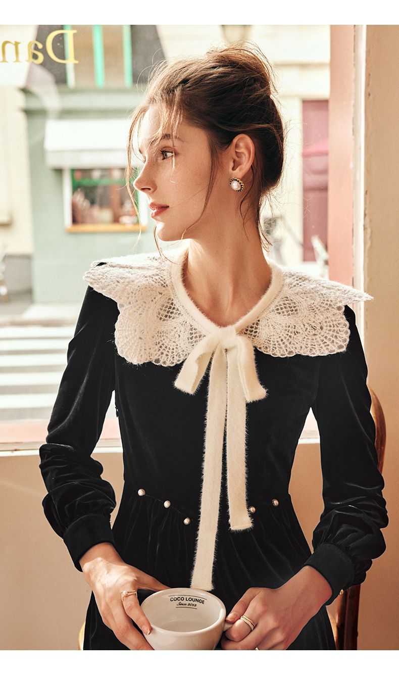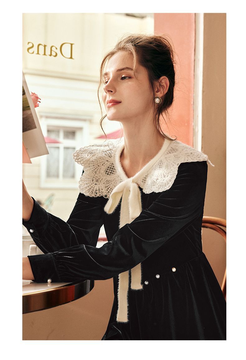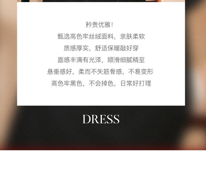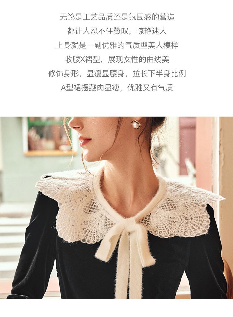 OLrain欧芮儿法式黑色丝绒连衣裙女秋季2022年新款收腰赫本风裙子