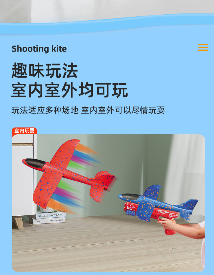 「数款可选!弹射飞机枪」加大号手抛飞机玩具弹射户外儿童回旋滑行泡沫飞机模型