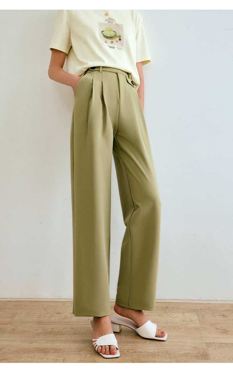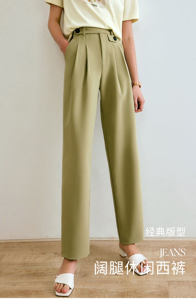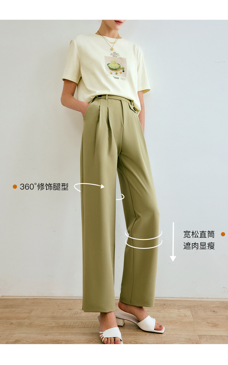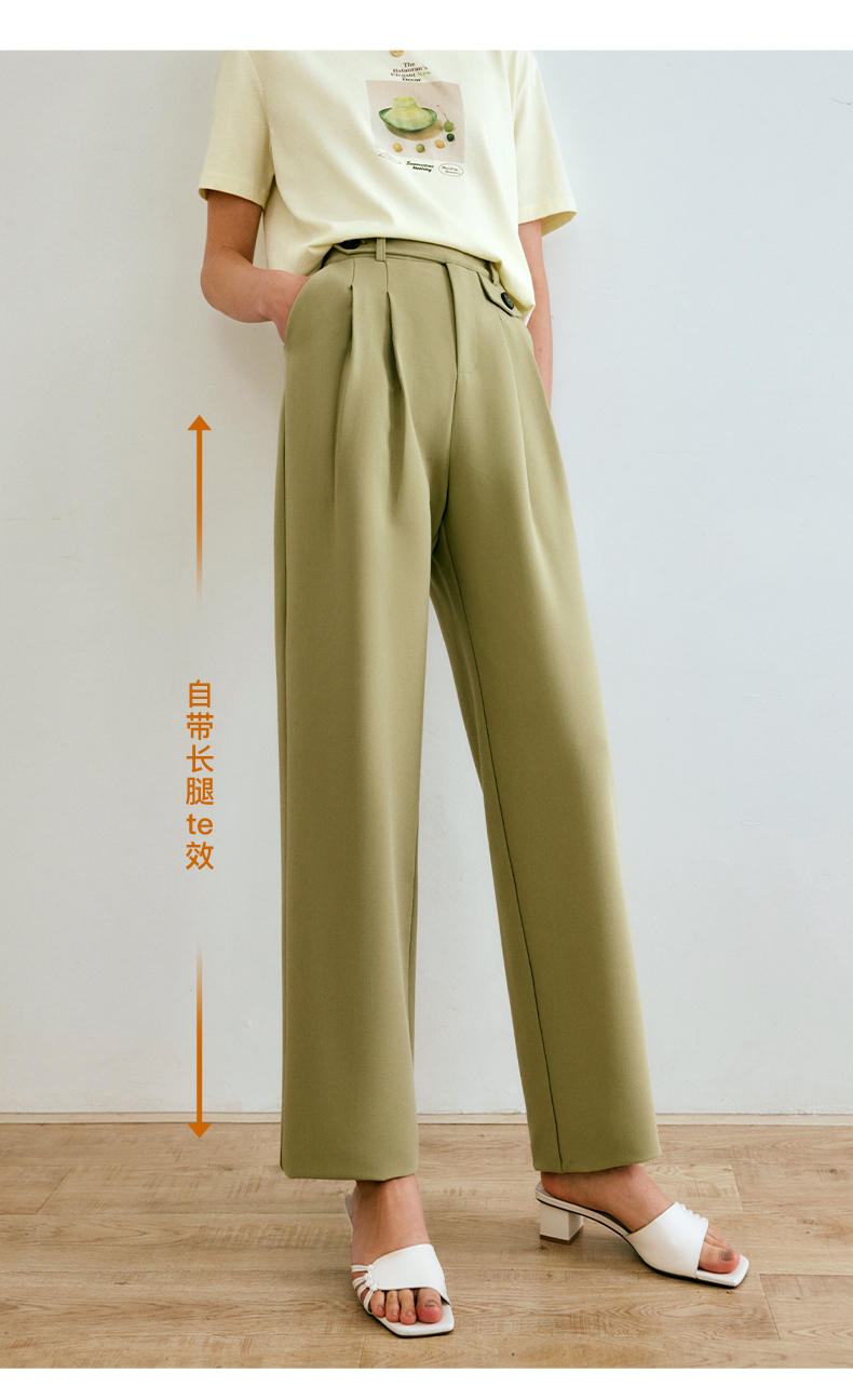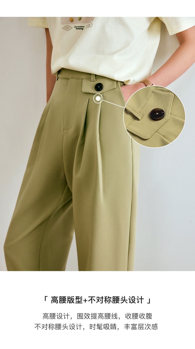 欧芮儿西装休闲裤女夏季2022年新款高腰直筒阔腿设计感别致裤子