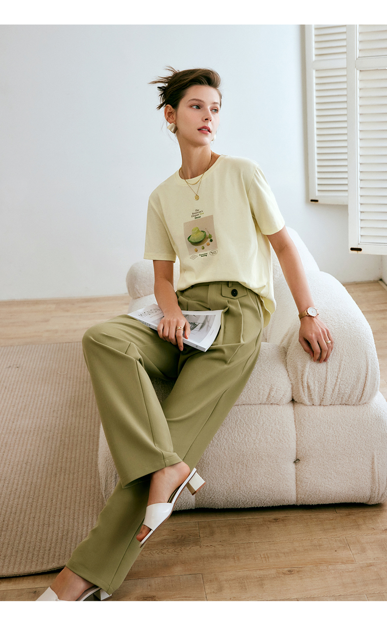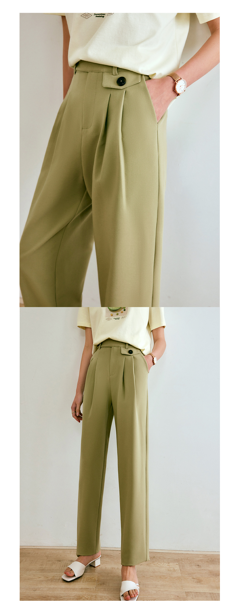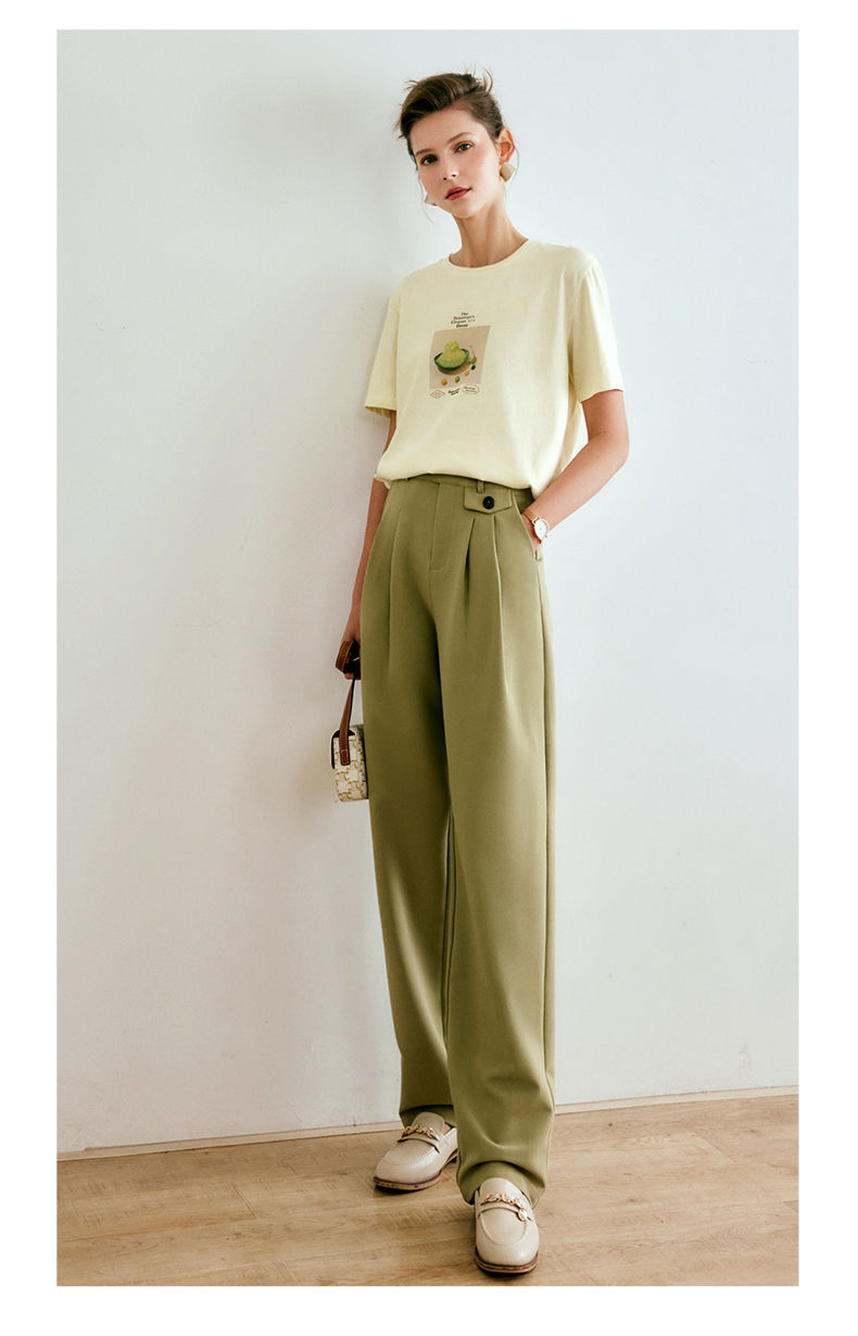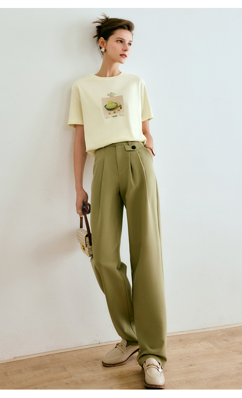 欧芮儿西装休闲裤女夏季2022年新款高腰直筒阔腿设计感别致裤子