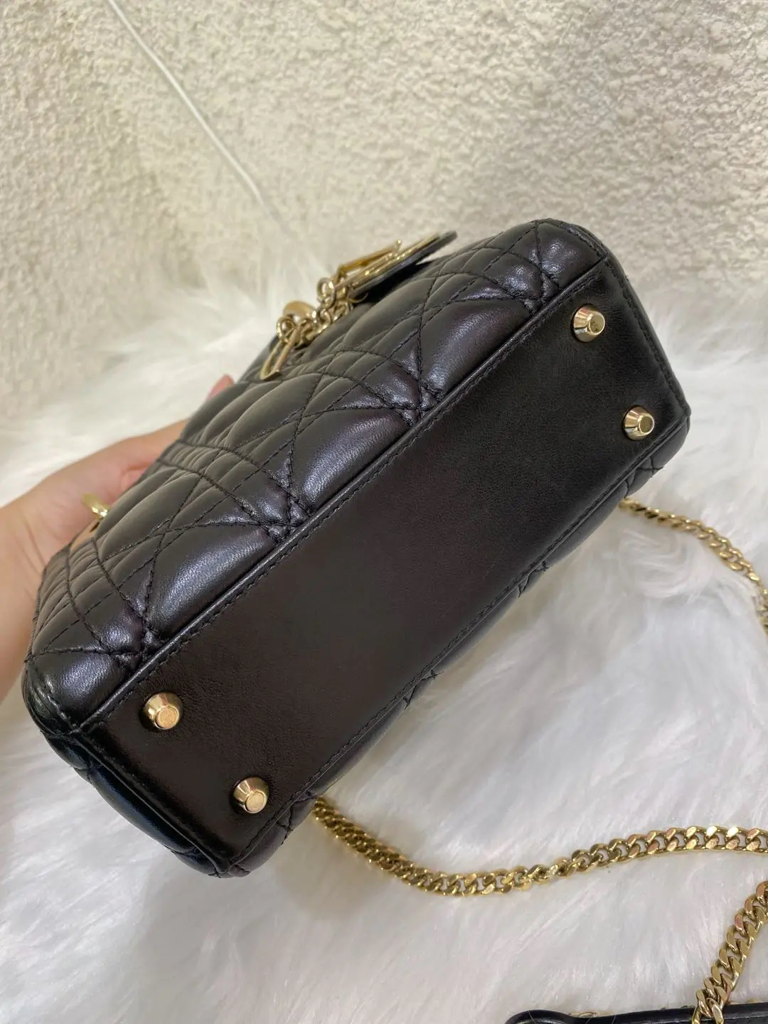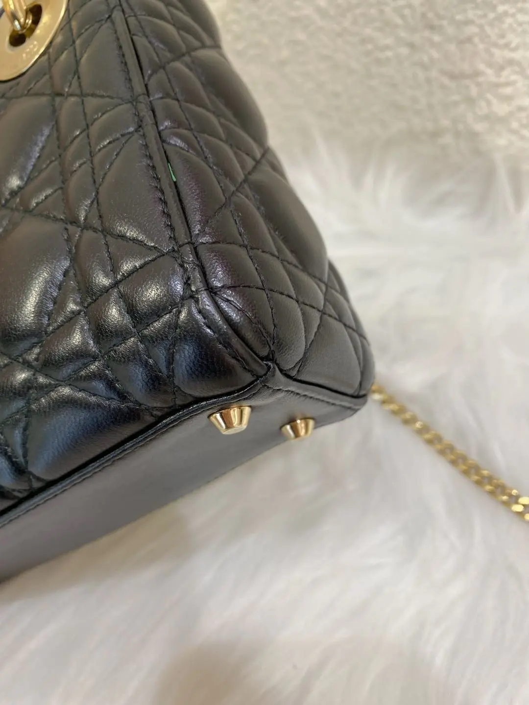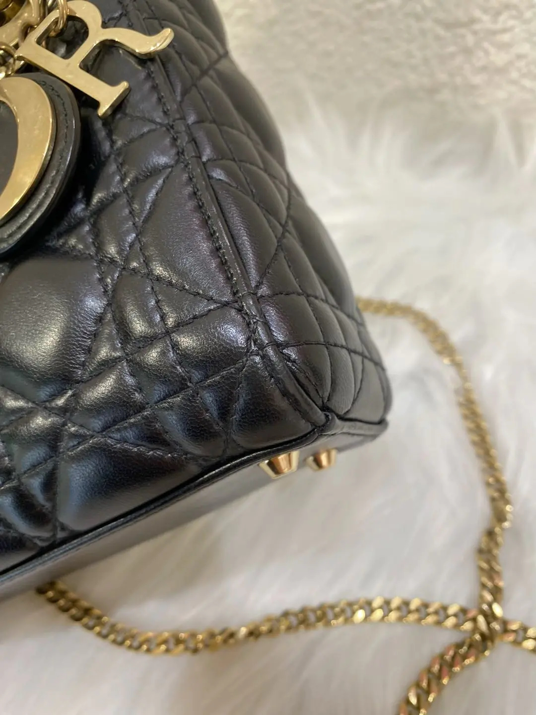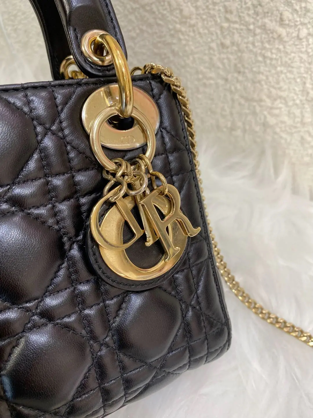 【商品详情】正品二手 Dior 三格 黑金 羊皮 戴妃包🖤 97新 17×15 配件:肩带 防尘袋 盒子。藤格纹羊皮 优雅贵气