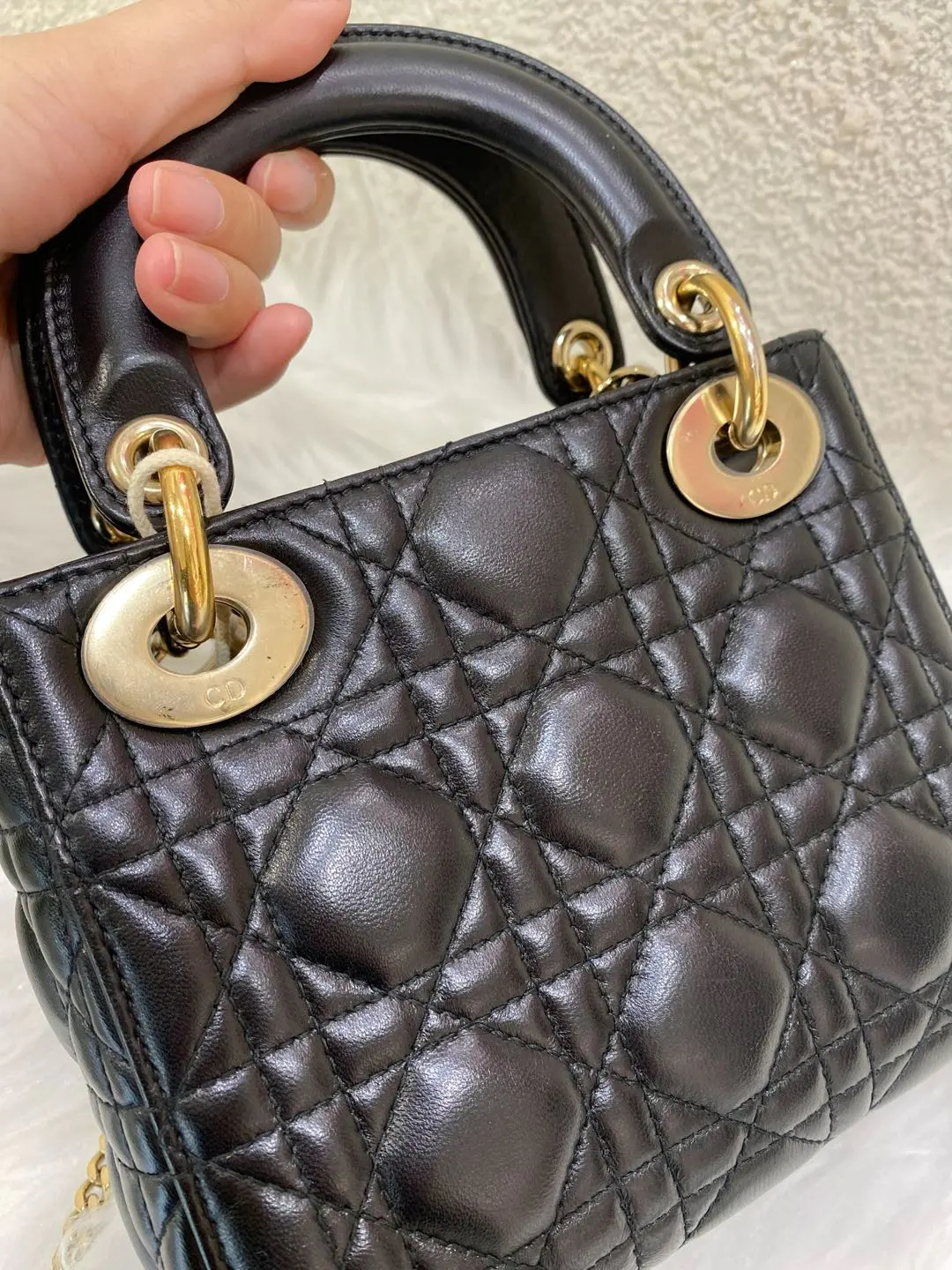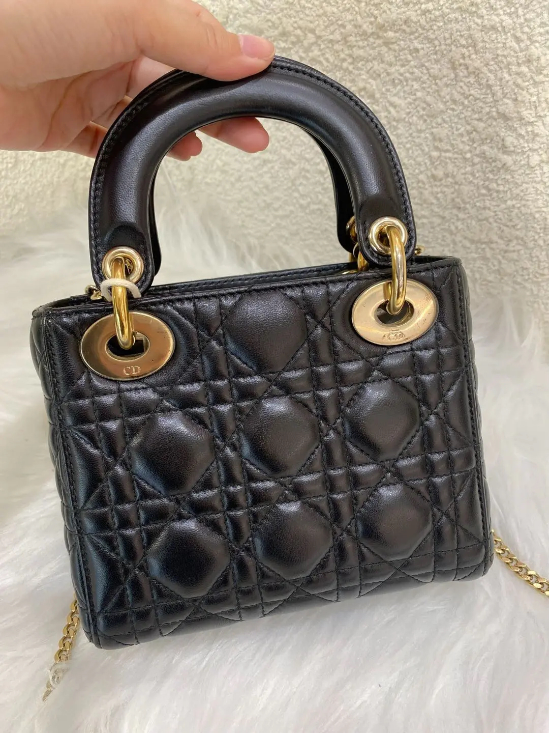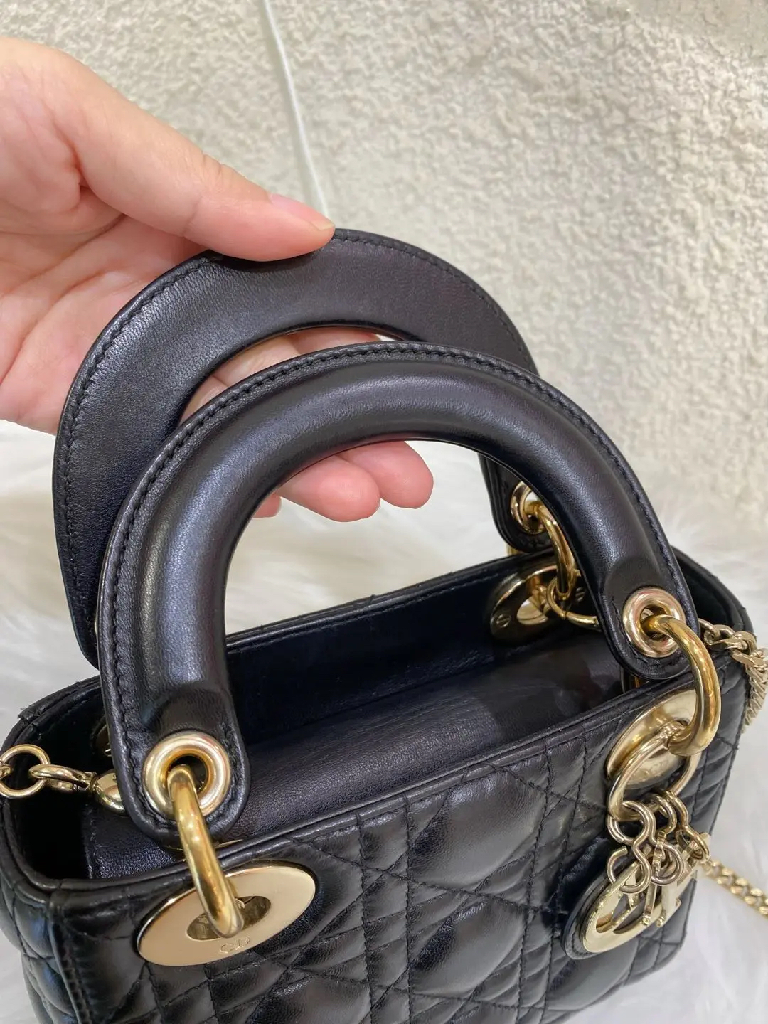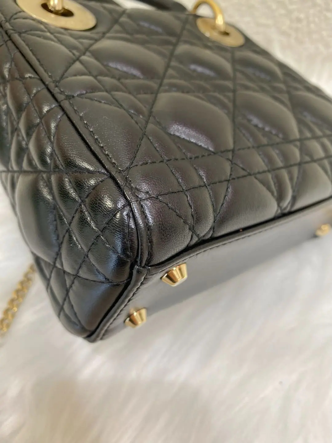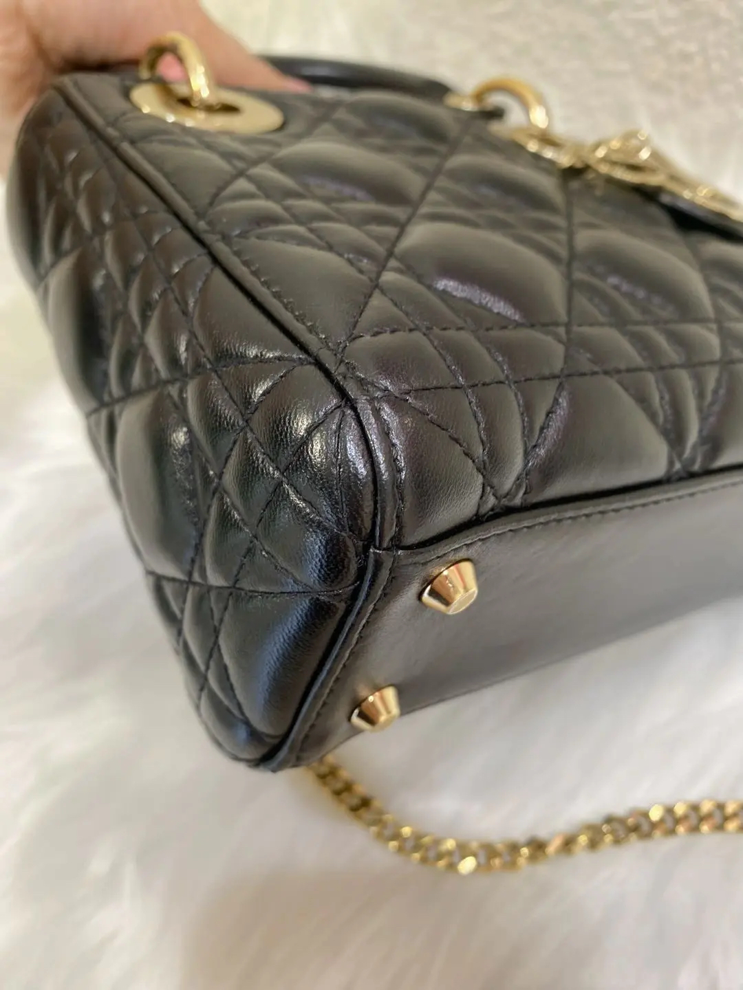 【商品详情】正品二手 Dior 三格 黑金 羊皮 戴妃包🖤 97新 17×15 配件:肩带 防尘袋 盒子。藤格纹羊皮 优雅贵气