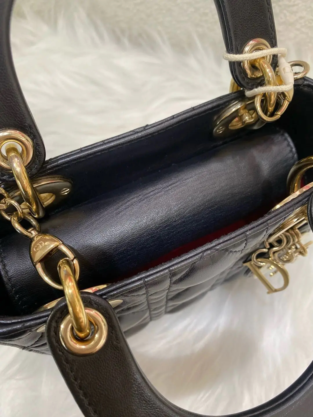 Dior 三格 黑金 羊皮 戴妃包
