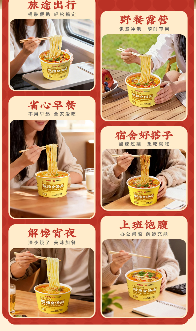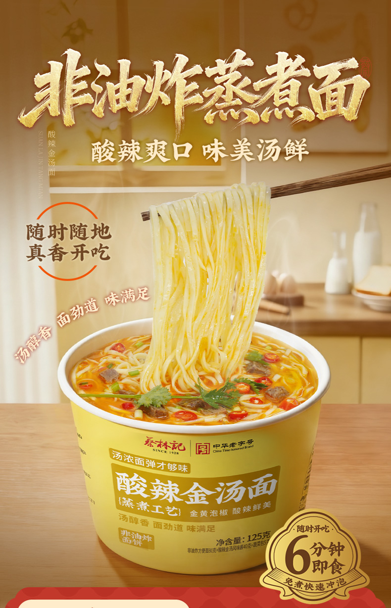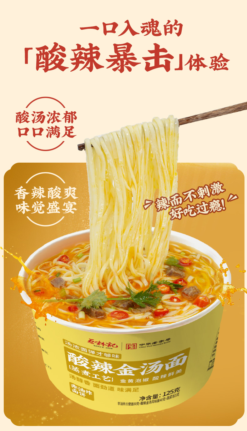 蔡林记冲泡酸辣金汤面125g*4桶 酸辣开胃免煮方便速食