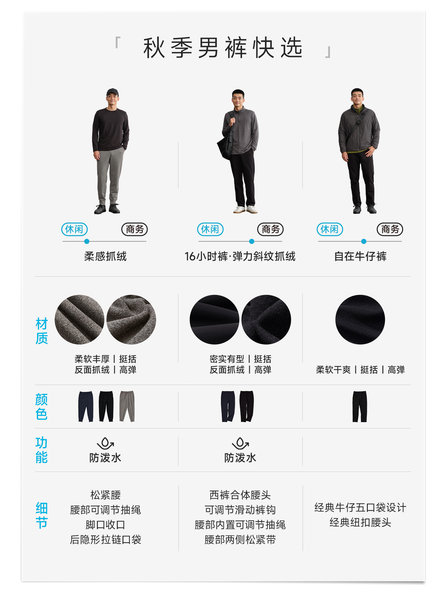 【新品降价】allblu幼岚男装【柔感抓绒】"平衡柔软挺括"长裤|挺括