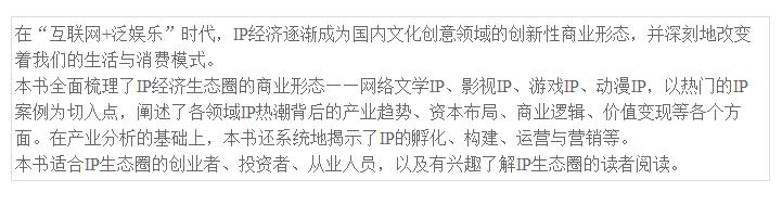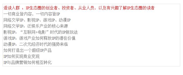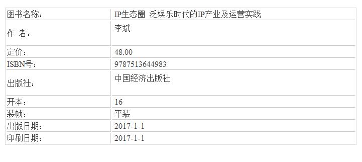 IP生态圈 泛娱乐时代的IP产业及运营实践 李斌 中国经济出版社 全面梳理了IP经济生态圈的商业形态