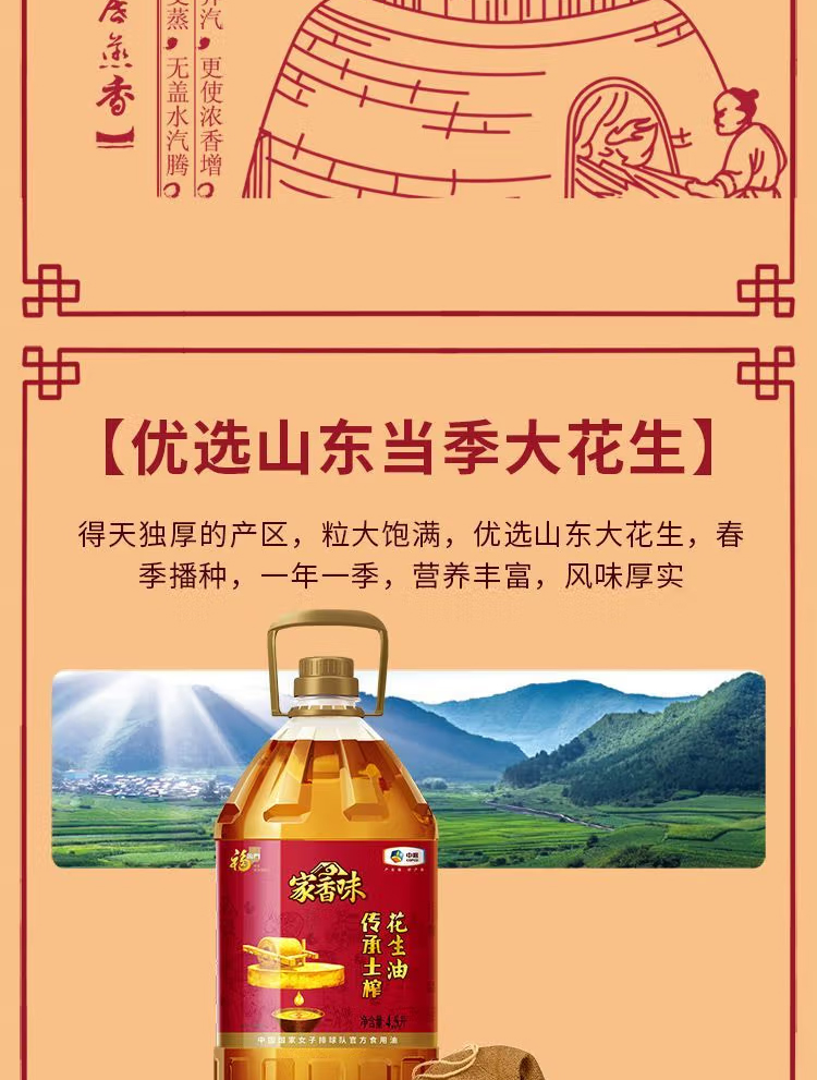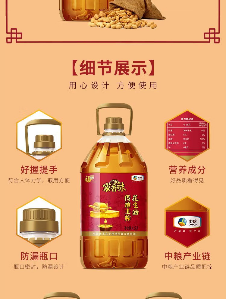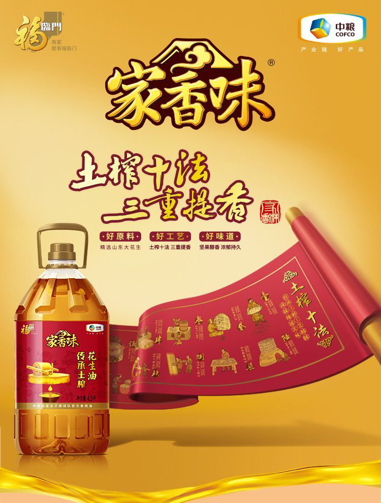 福临门家香味传承土榨花生油4.5L