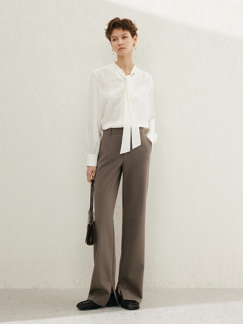 【积分换购不退货】【商场同款】诗凡黎灰色高腰直筒休闲裤2024夏新款长裤3F4350731