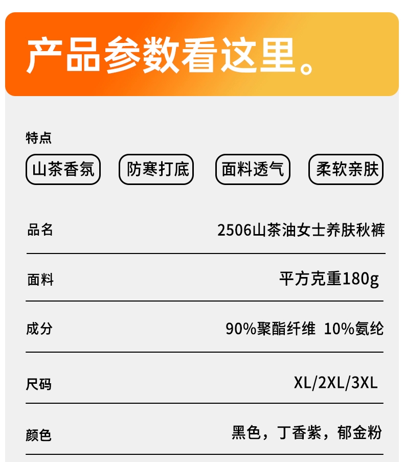 面料克重180g女士秋冬御寒聚暖秋裤保暖裤打底裤山茶油秋裤睡裤2506/2508