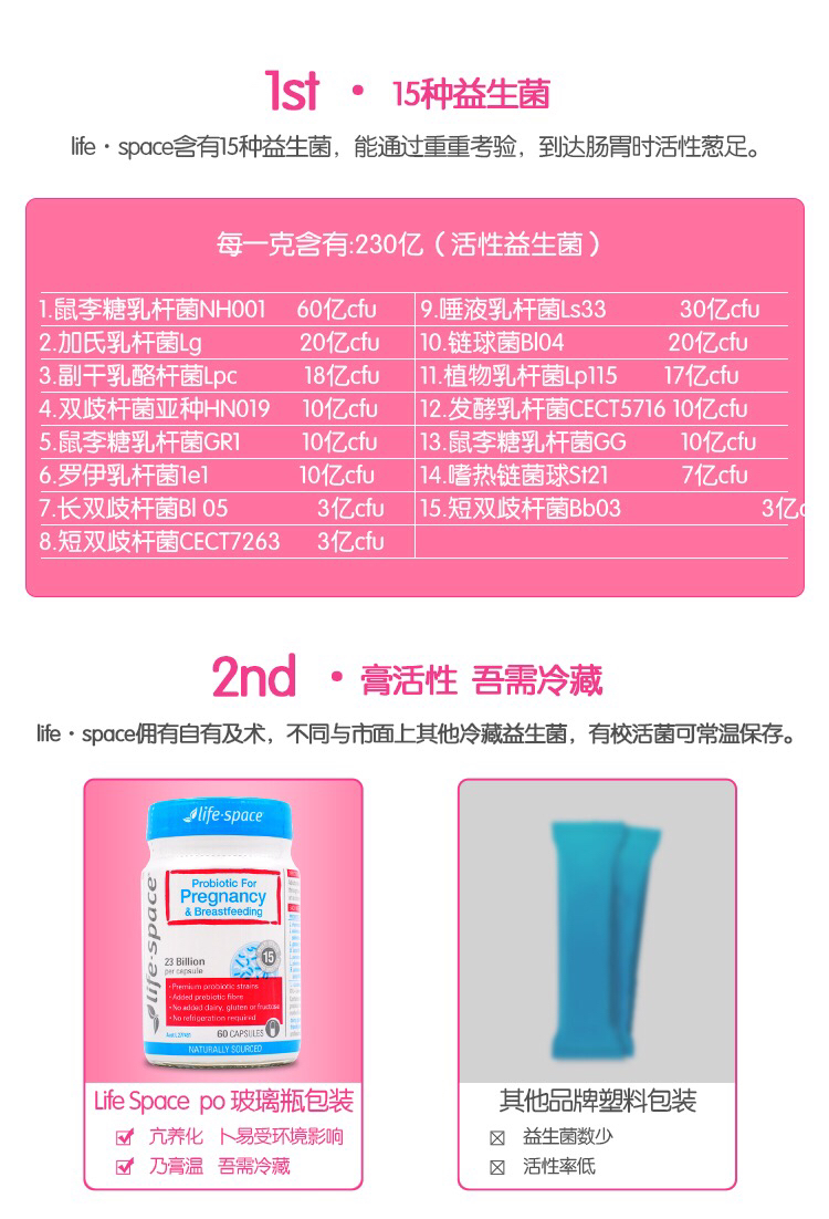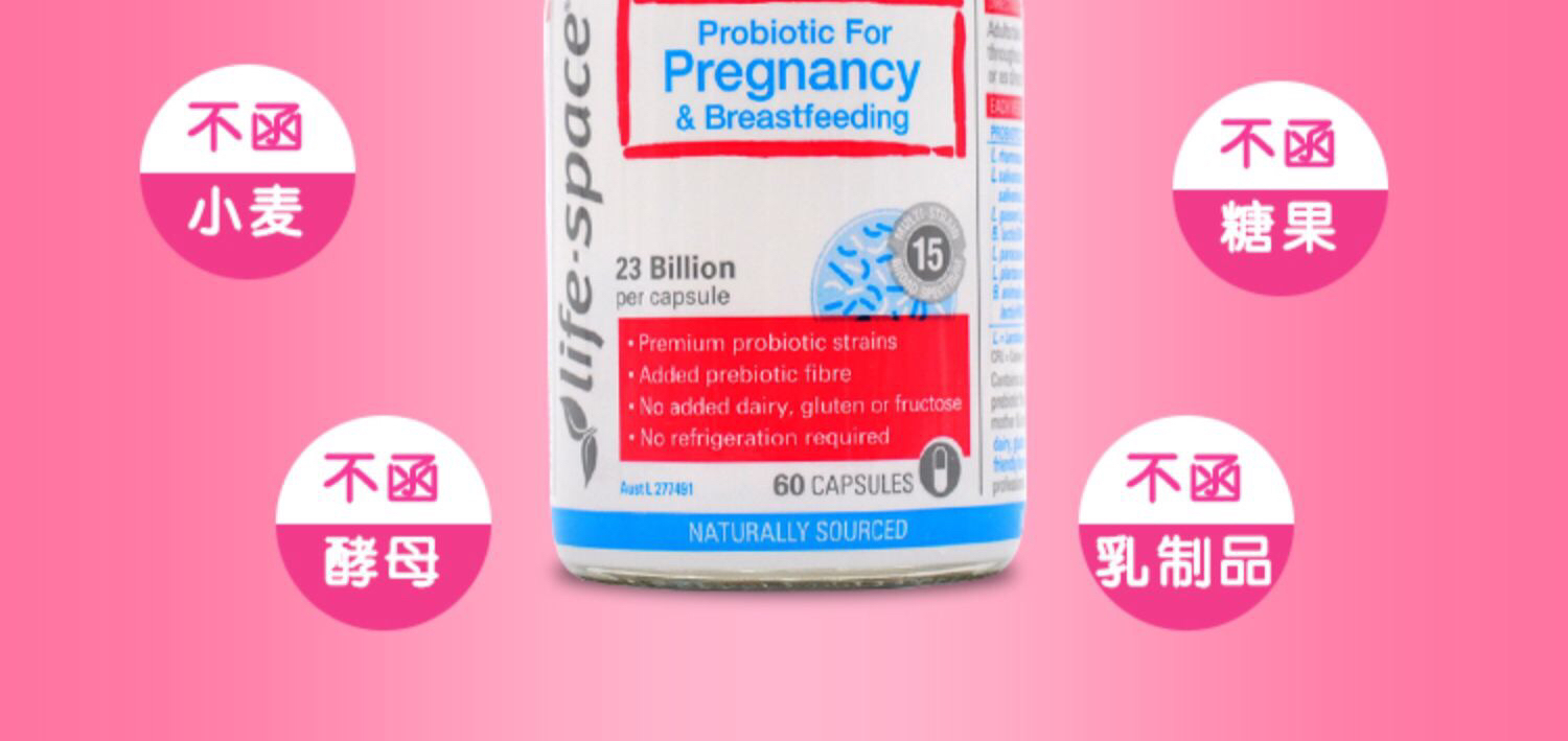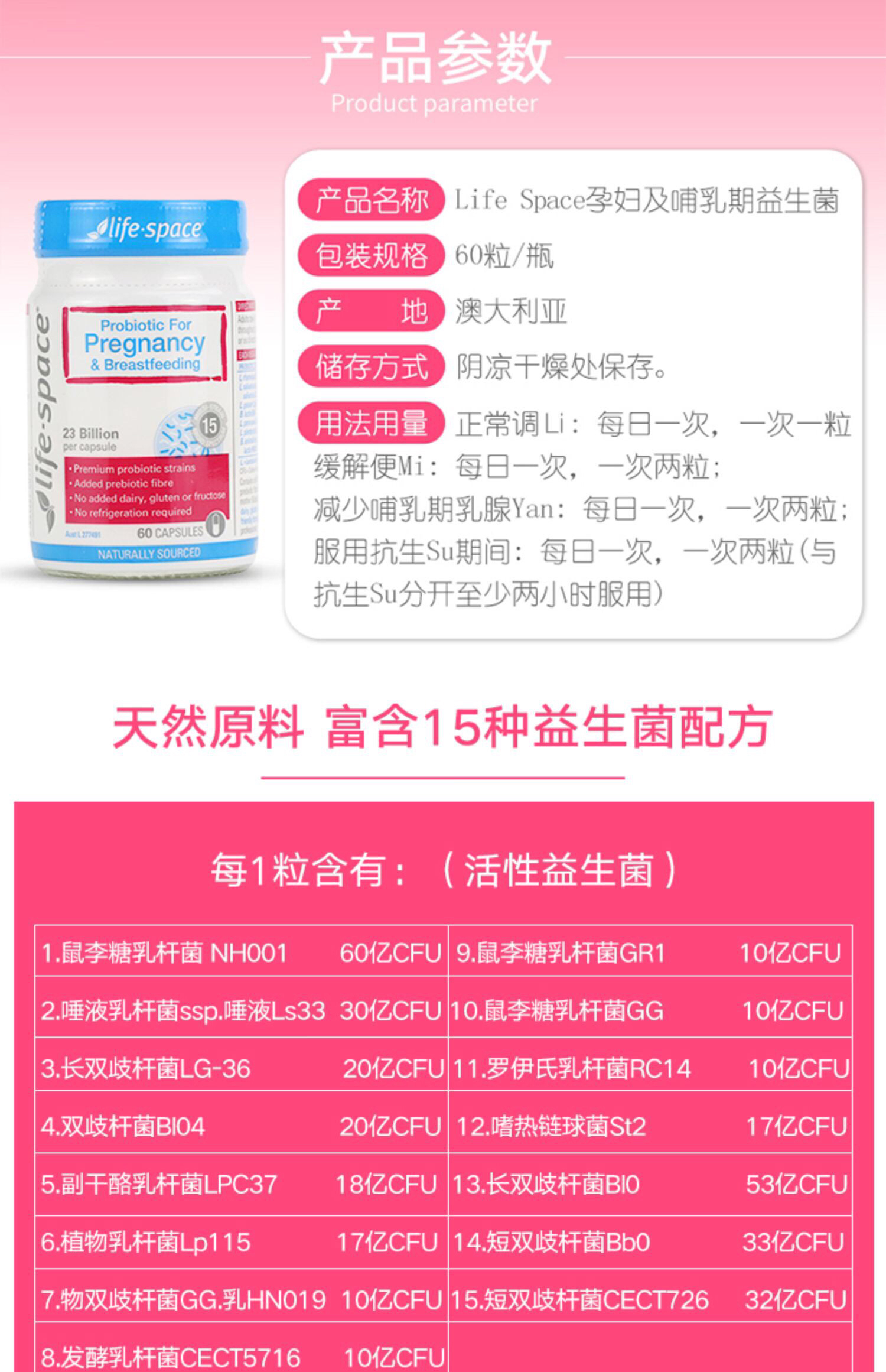 澳洲Life space孕妇益生菌 哺乳期孕期专用调理肠胃胶囊60粒-会员6折
