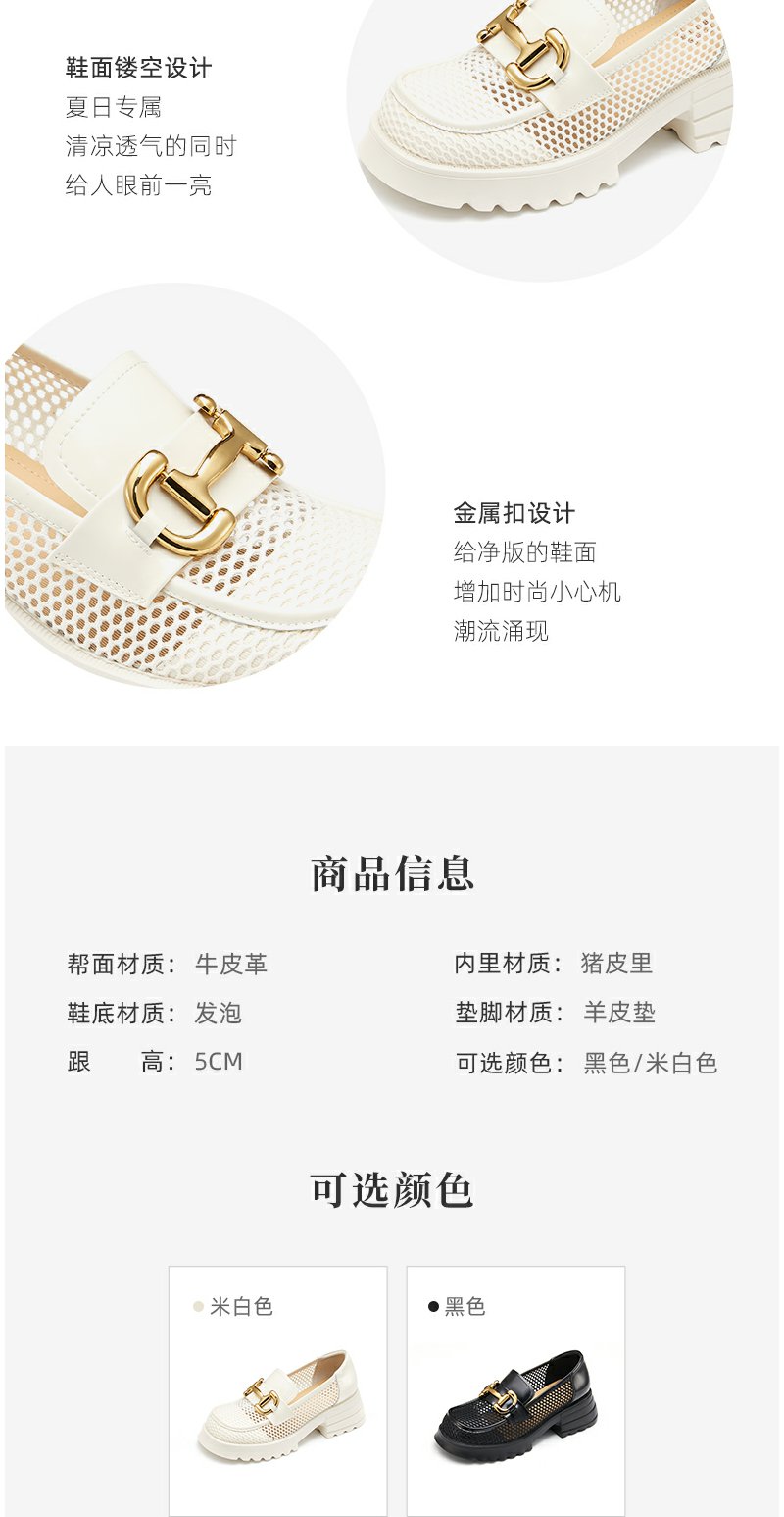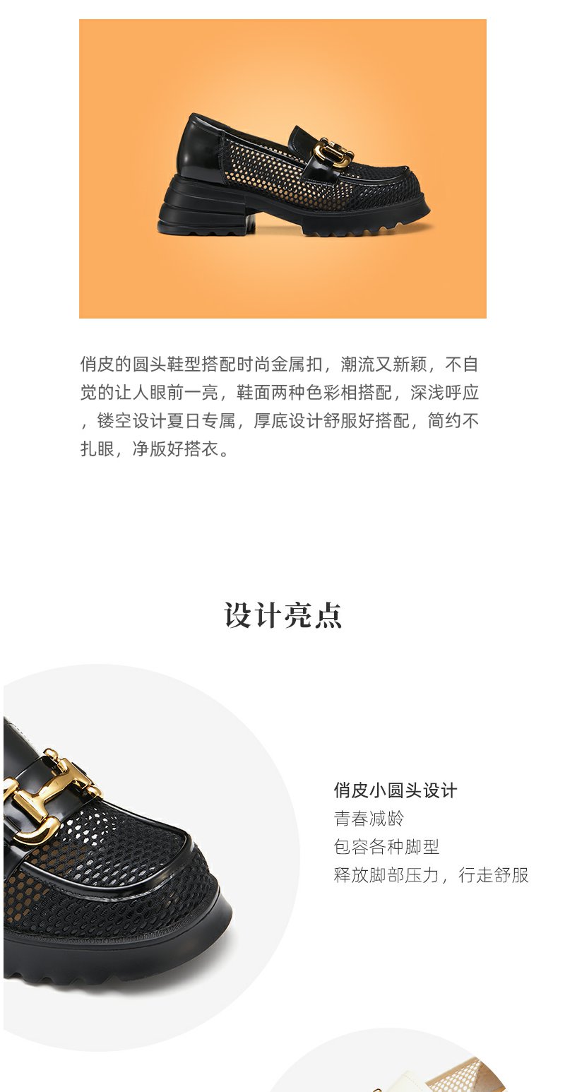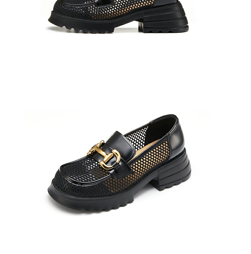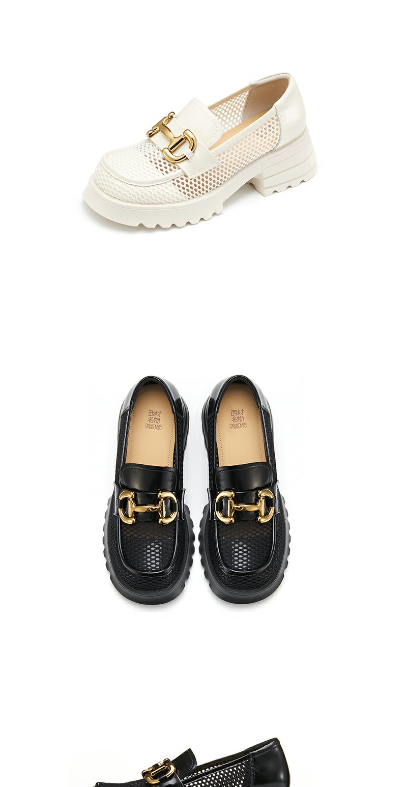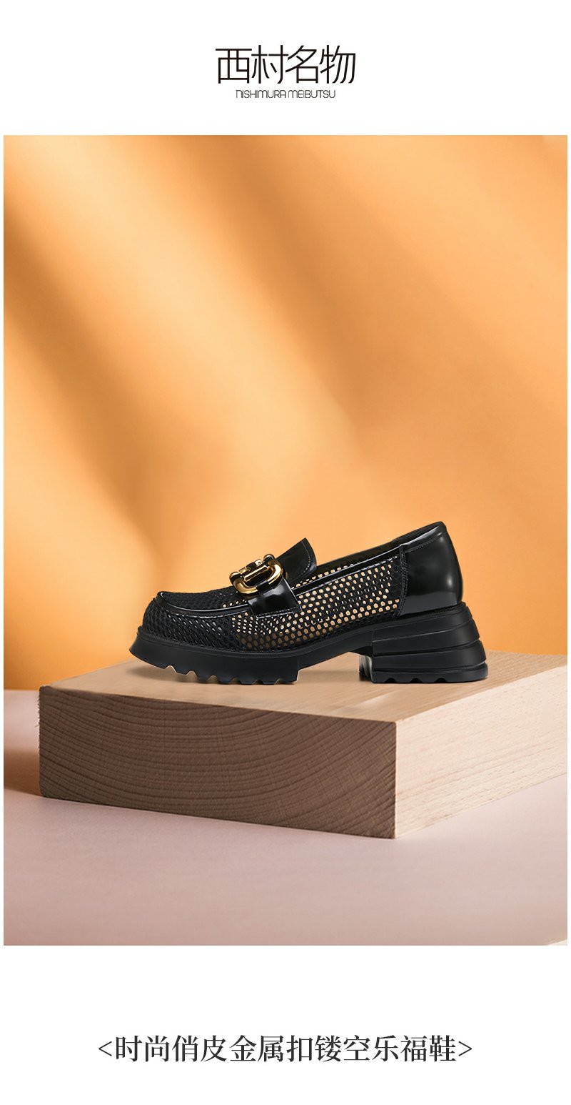 西村名物2022夏季款时尚方根乐福鞋网状金属扣休闲百搭女鞋19811