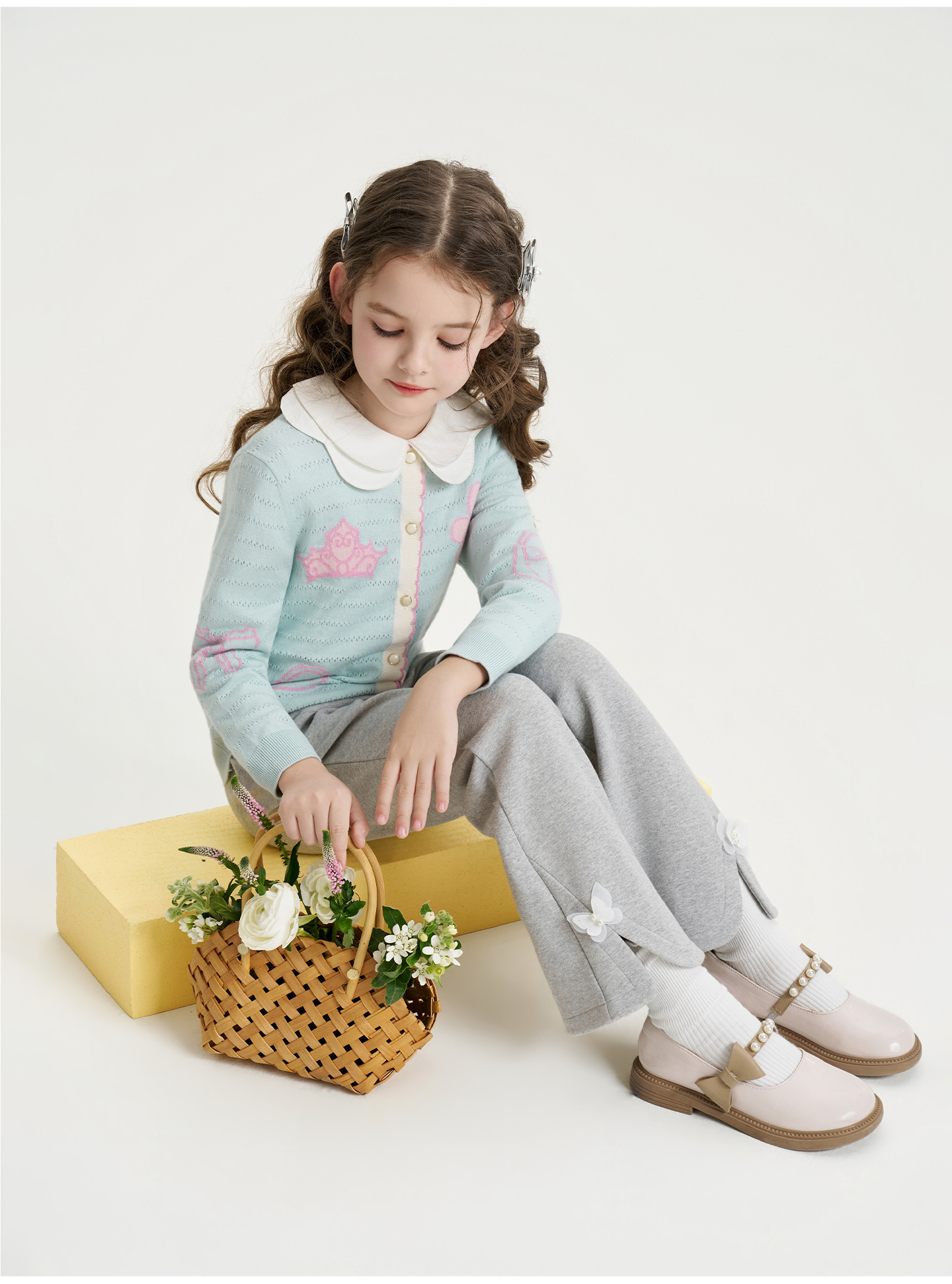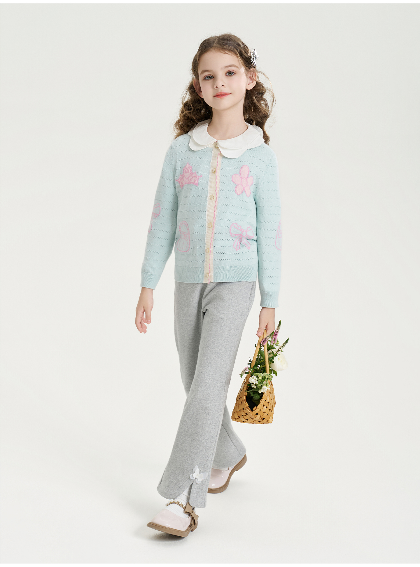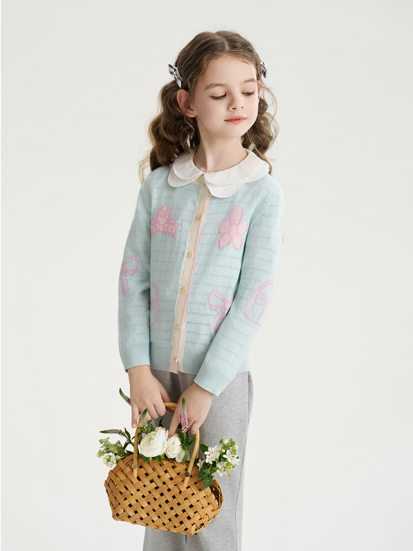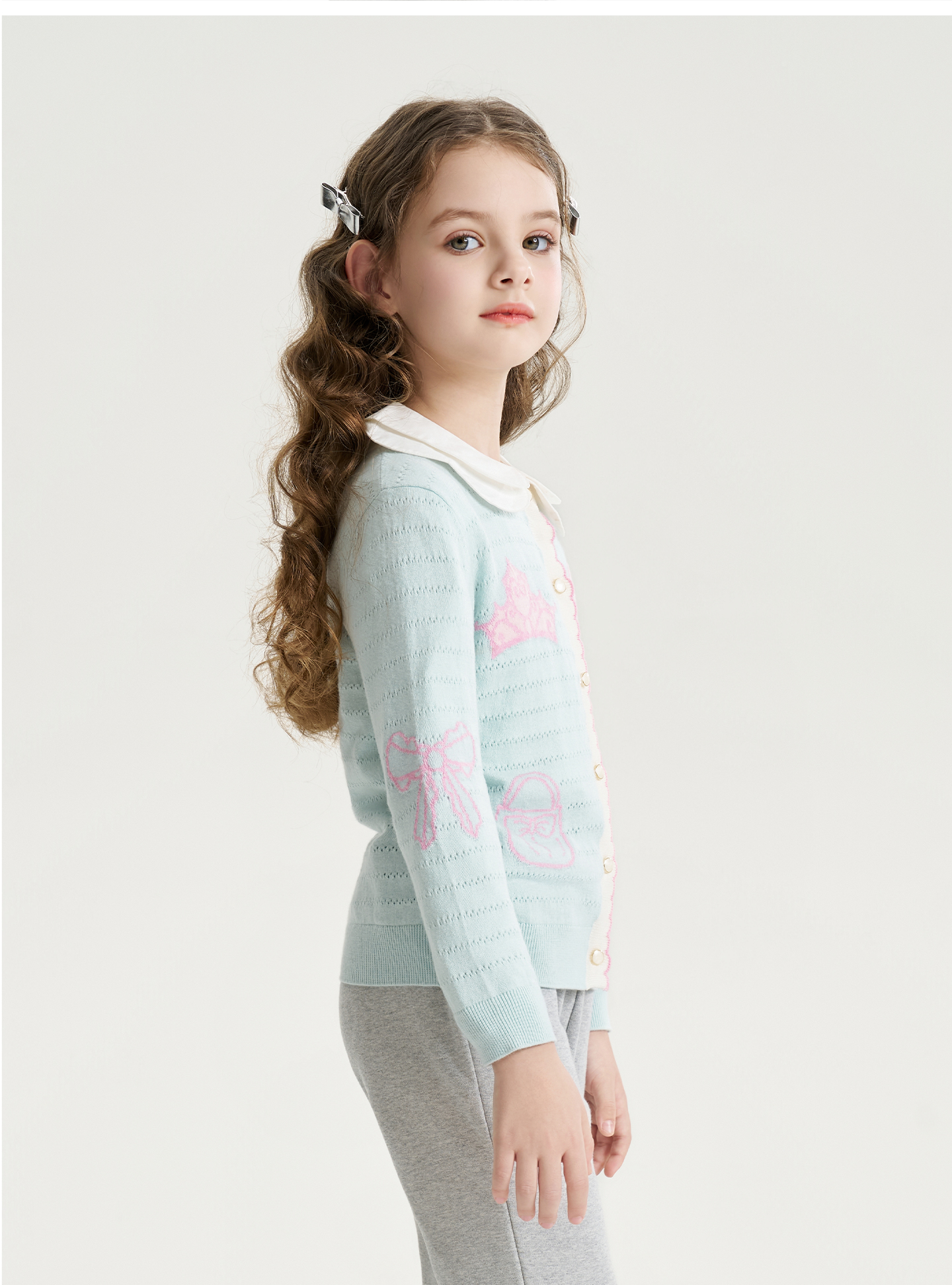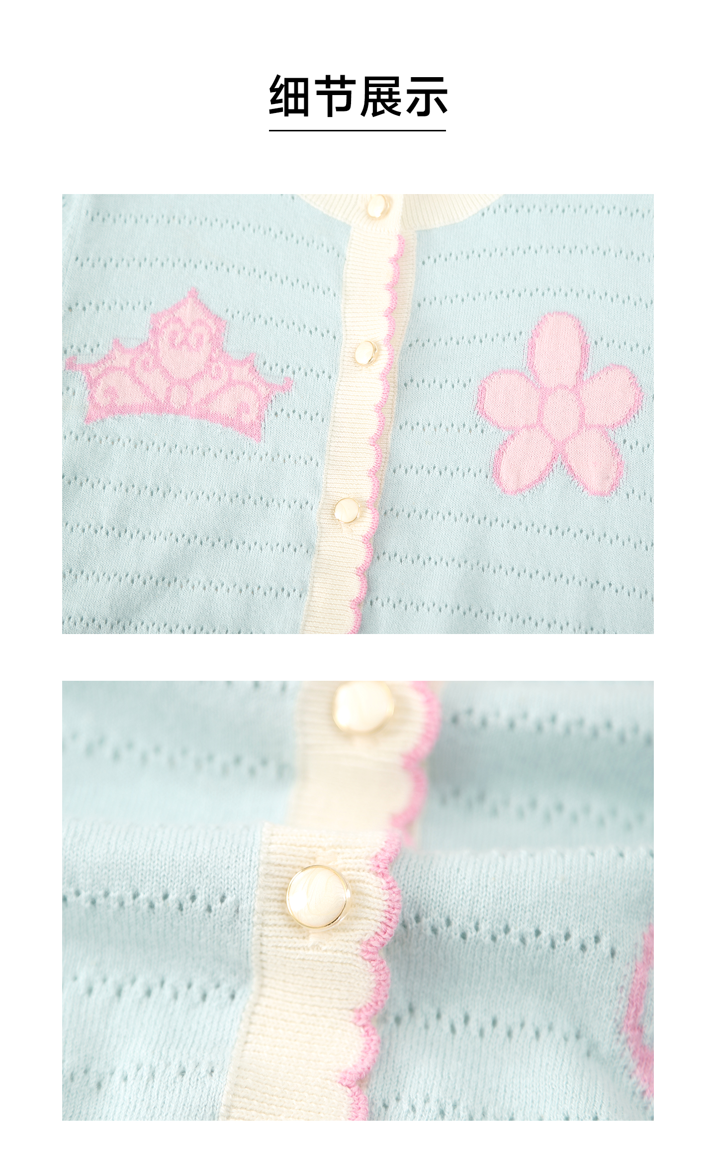 mettekids儿童针织衫2026春季新款女童蓝色花边桑蚕丝毛衣开衫