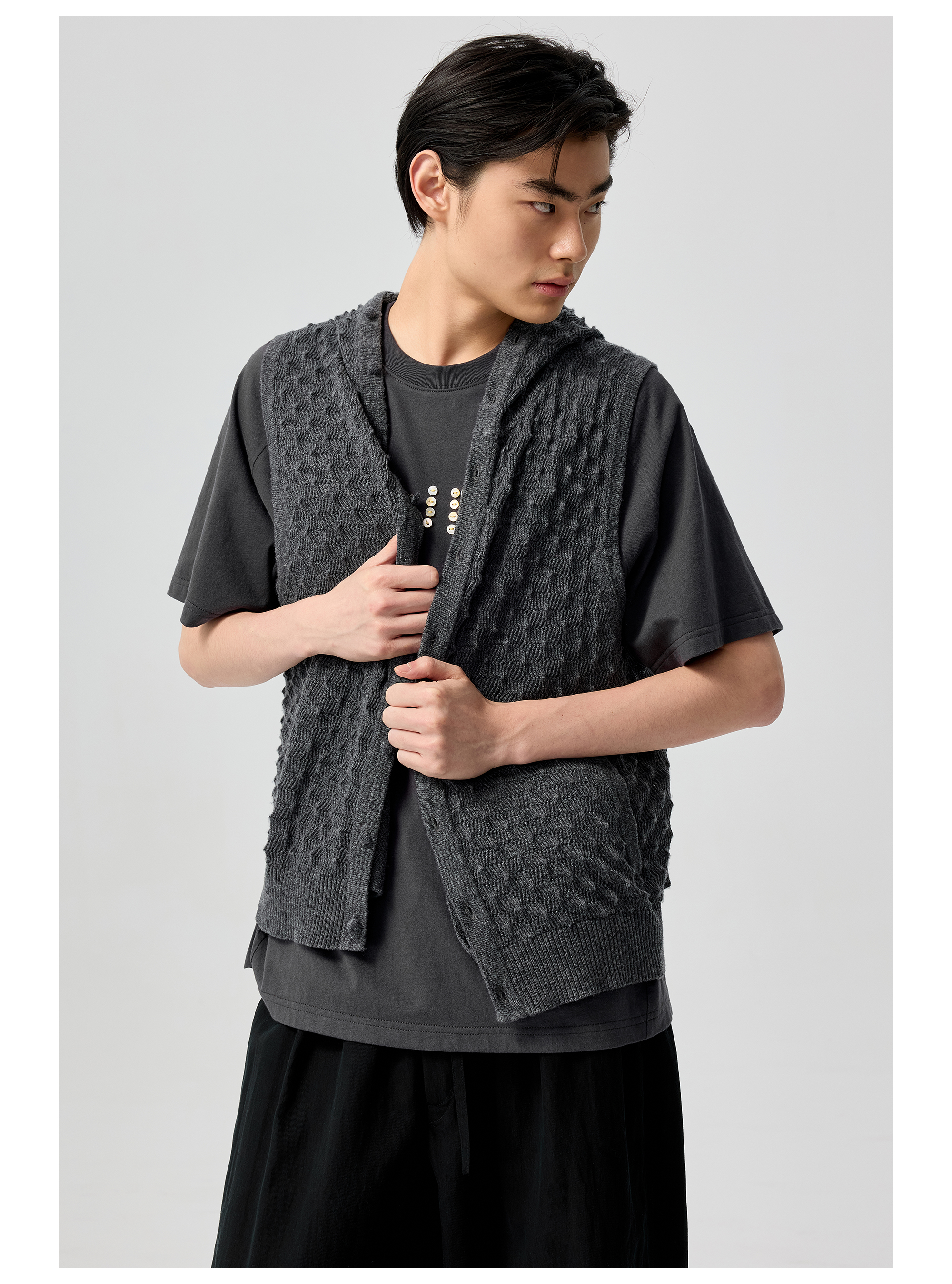 Simple Project/M25174/ “菠萝”针织连帽马甲