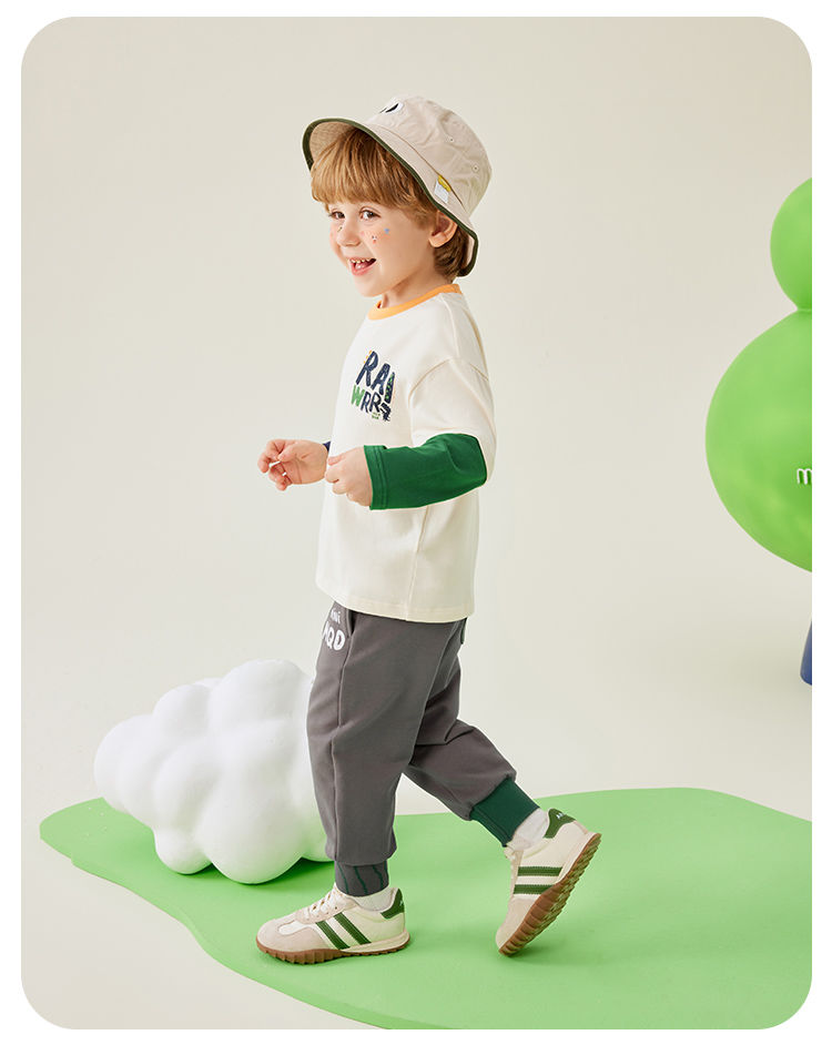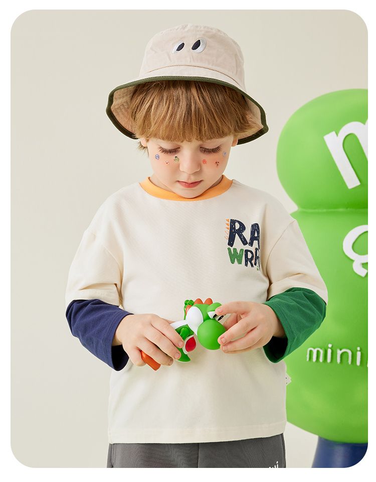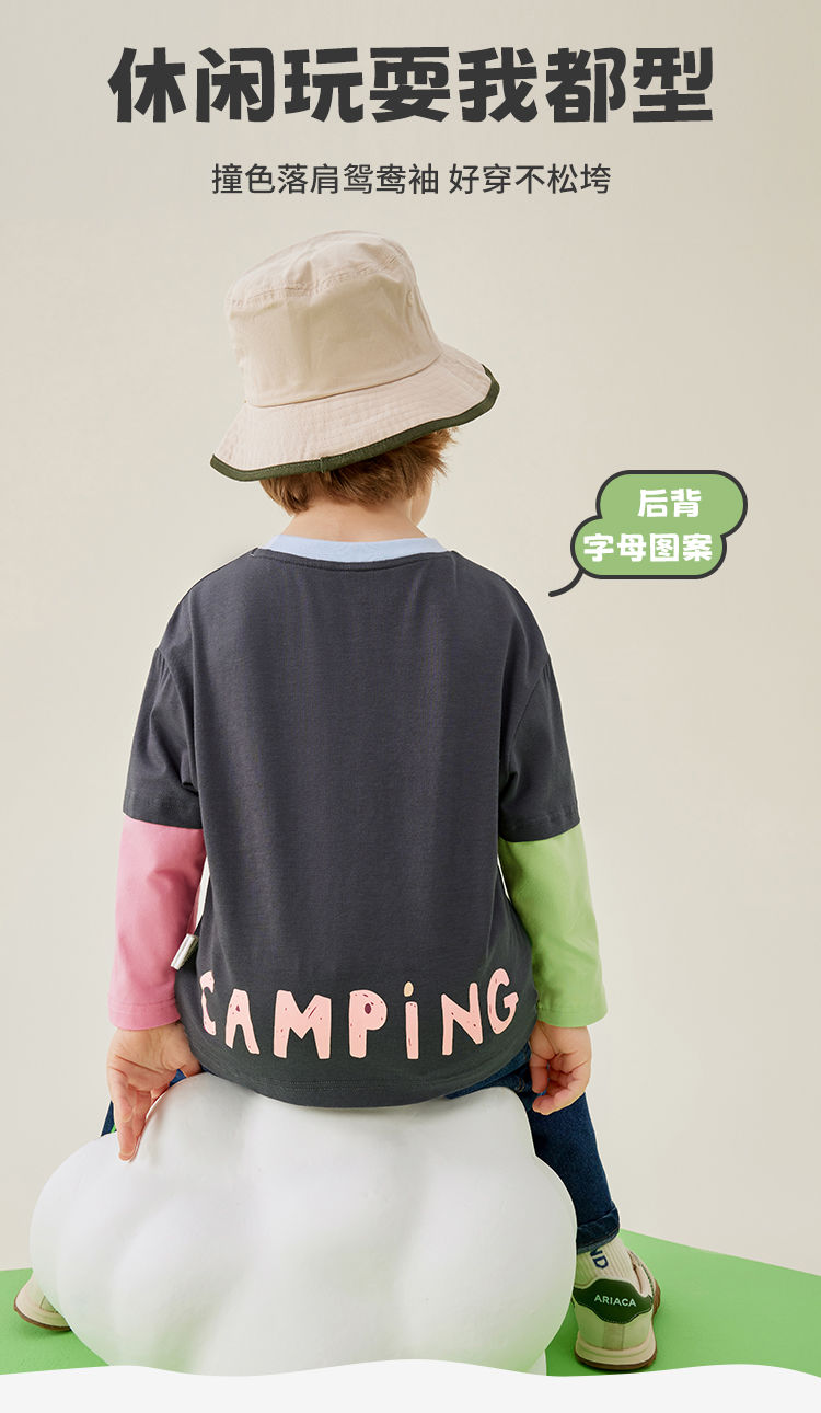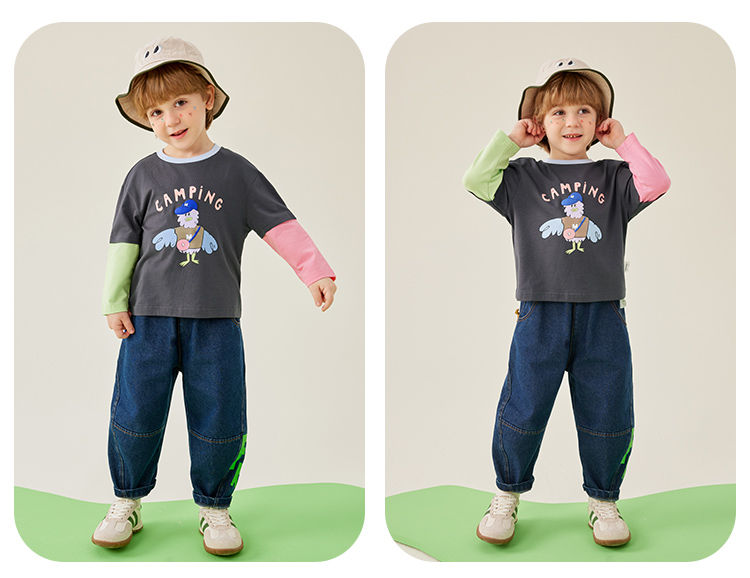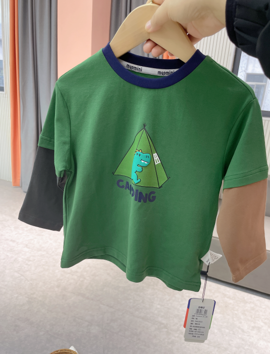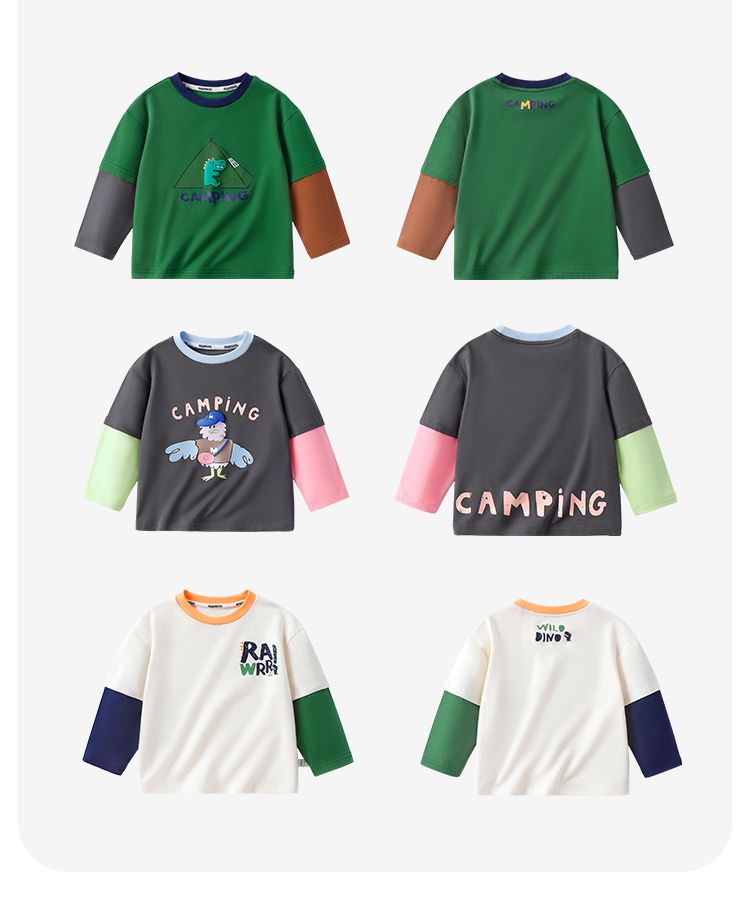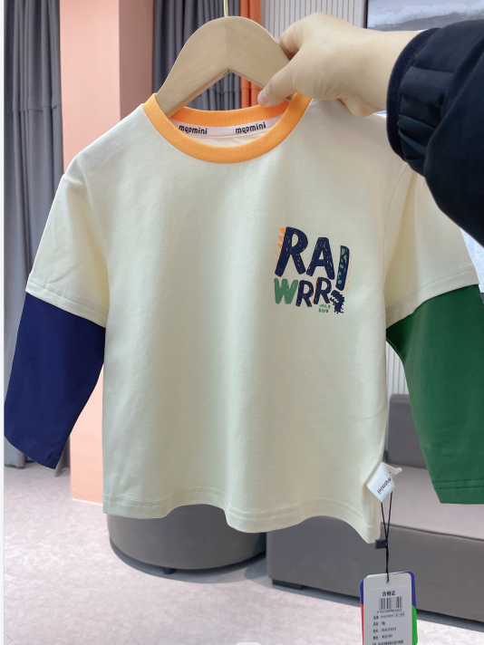 【80-140】【MQDmini】男童长袖t恤春秋撞色假两件上衣(92%棉8%氨纶)