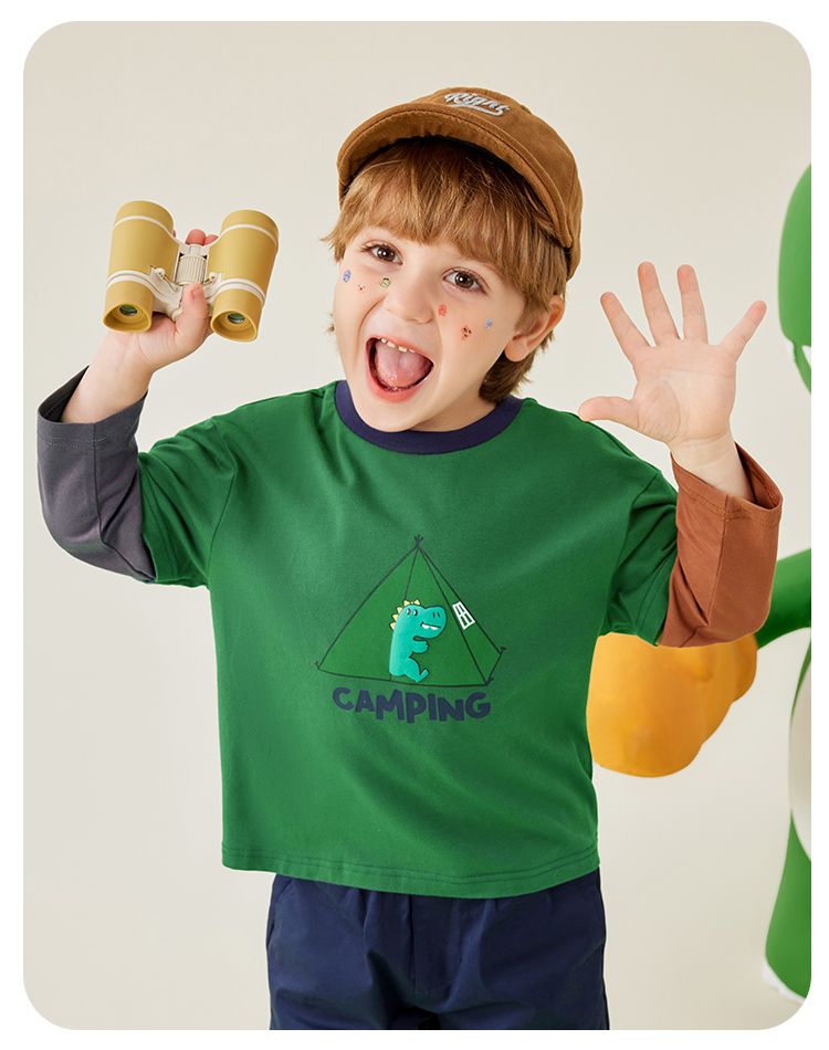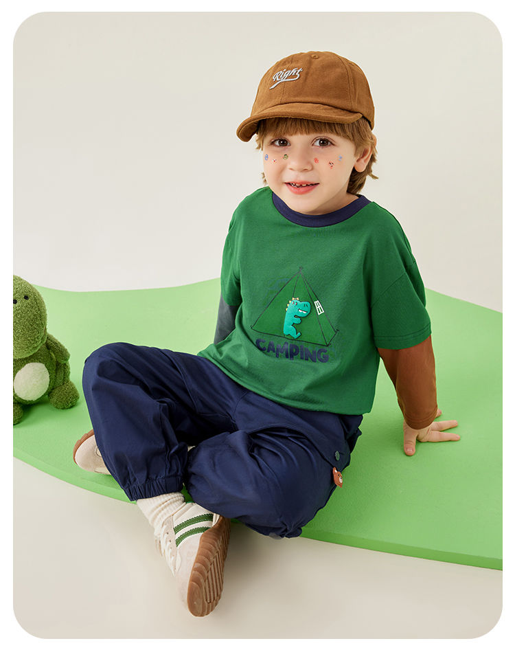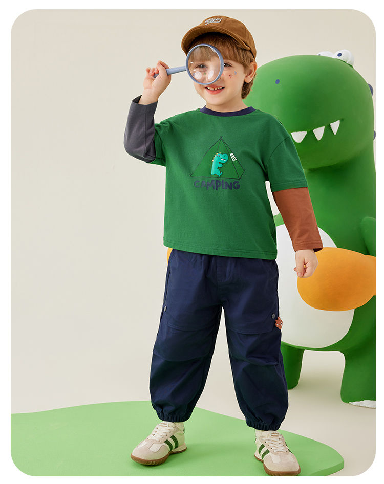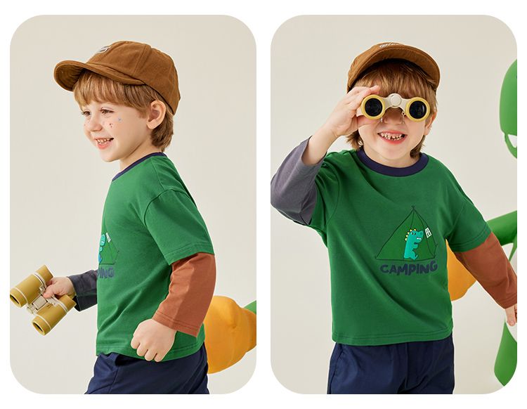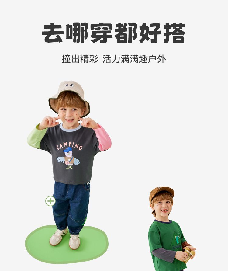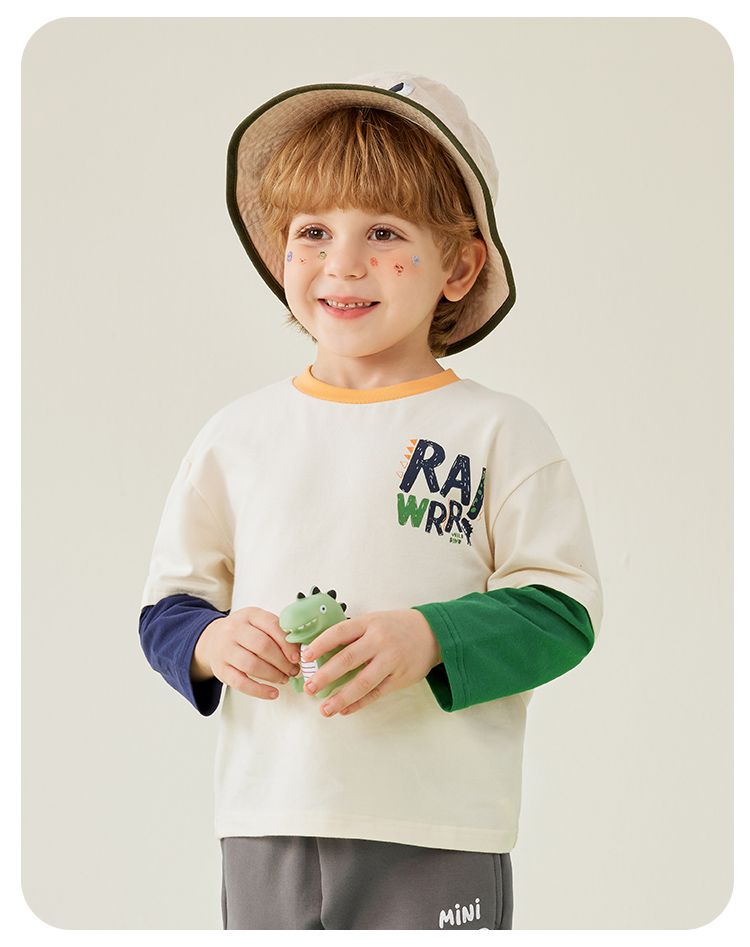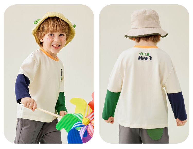 【80-140】【MQDmini】男童长袖t恤春秋撞色假两件上衣(92%棉8%氨纶)