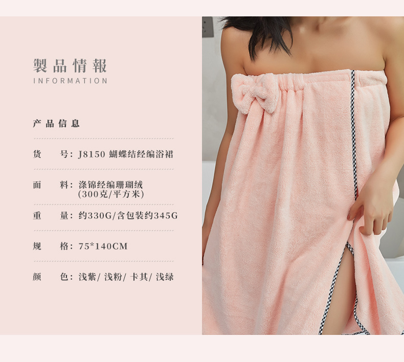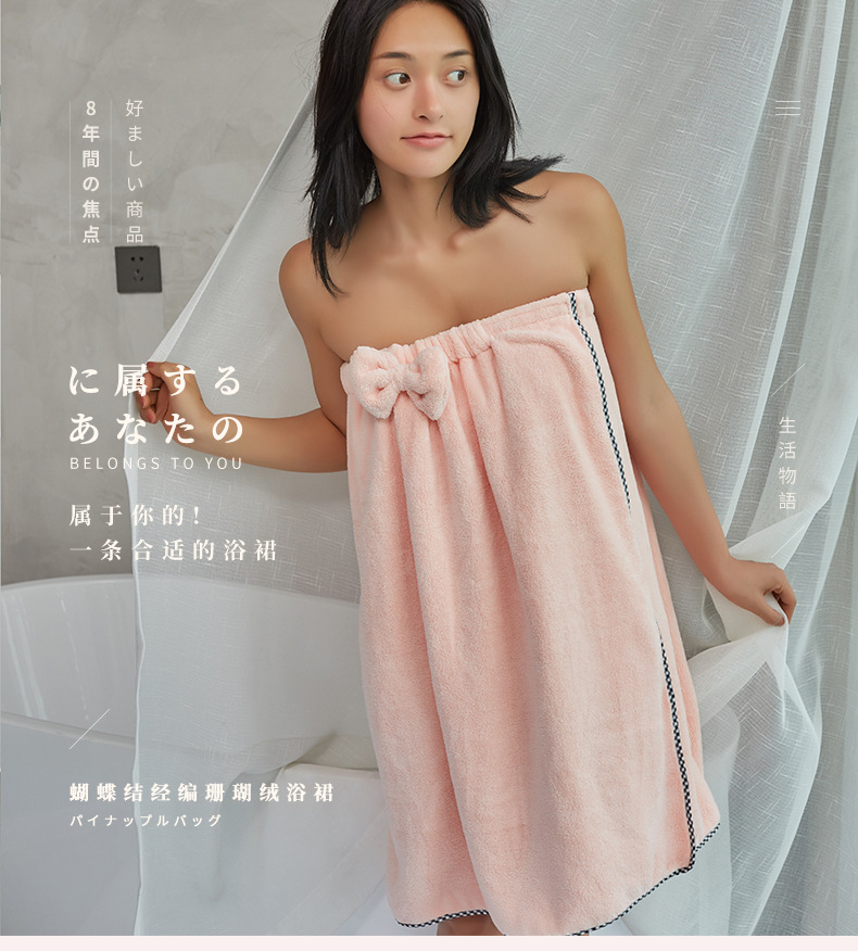 家减尘除蝴蝶结经编珊瑚绒浴裙J8150家居清洁新品(颜色随机)