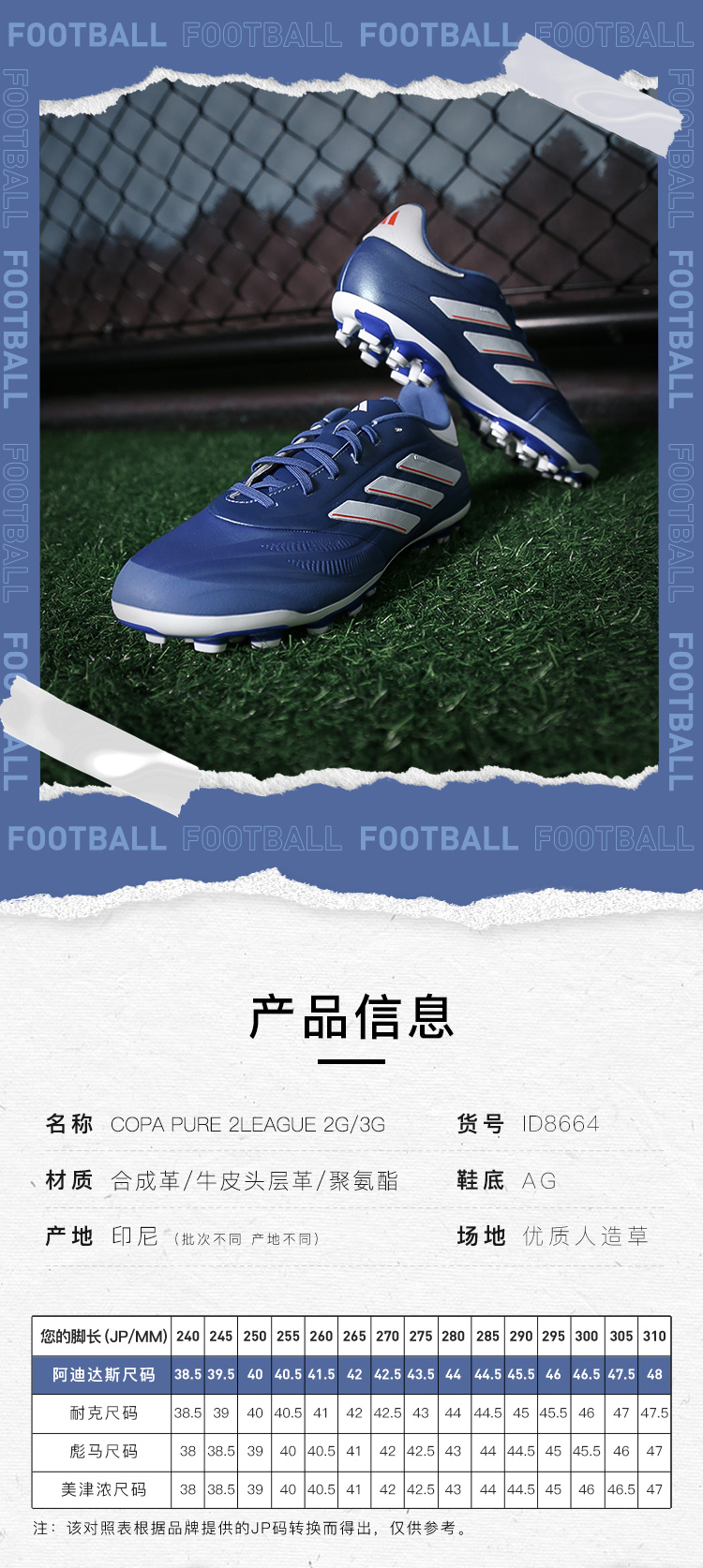 ADIDAS/阿迪达斯COPA PURE 2 LEAGUE中端AG短钉牛皮成人足球鞋男ID8664